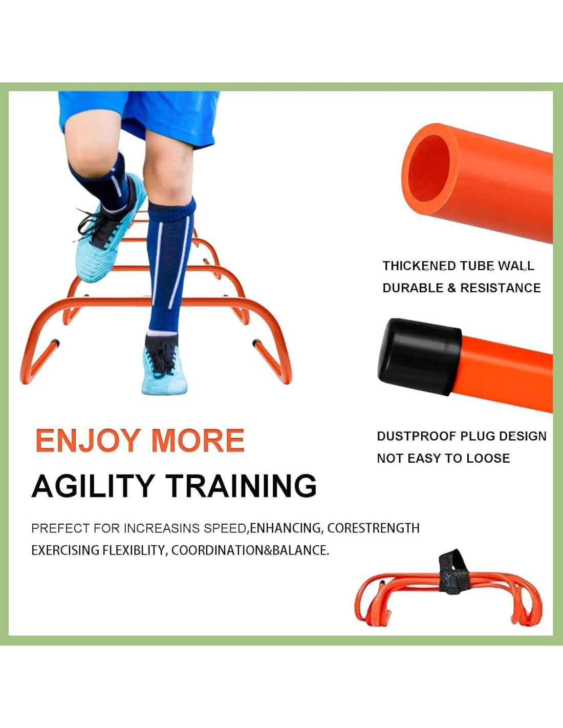 - Perfecto para Todas las Edades: Adecuado para niños y adultos, el conjunto de kit de entrenamiento de fútbol es perfecto para mejorar la velocidad, agilidad, coordinación y condición física general. Ideal para el entrenamiento de fútbol, rugby y varios otros equipos de entrenamiento de vallas.