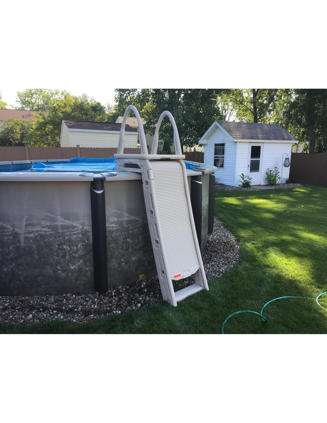 - Escalón Estable: La escalera de piscina proporciona estabilidad con cada paso con los amplios escalones Comfortread de 5 pulgadas (12.7 cm) por 18 pulgadas (45.72 cm), plataforma extra grande y rieles laterales curvados. Se adapta a rieles superiores de piscina de hasta 14 pulgadas (35.56 cm) de ancho