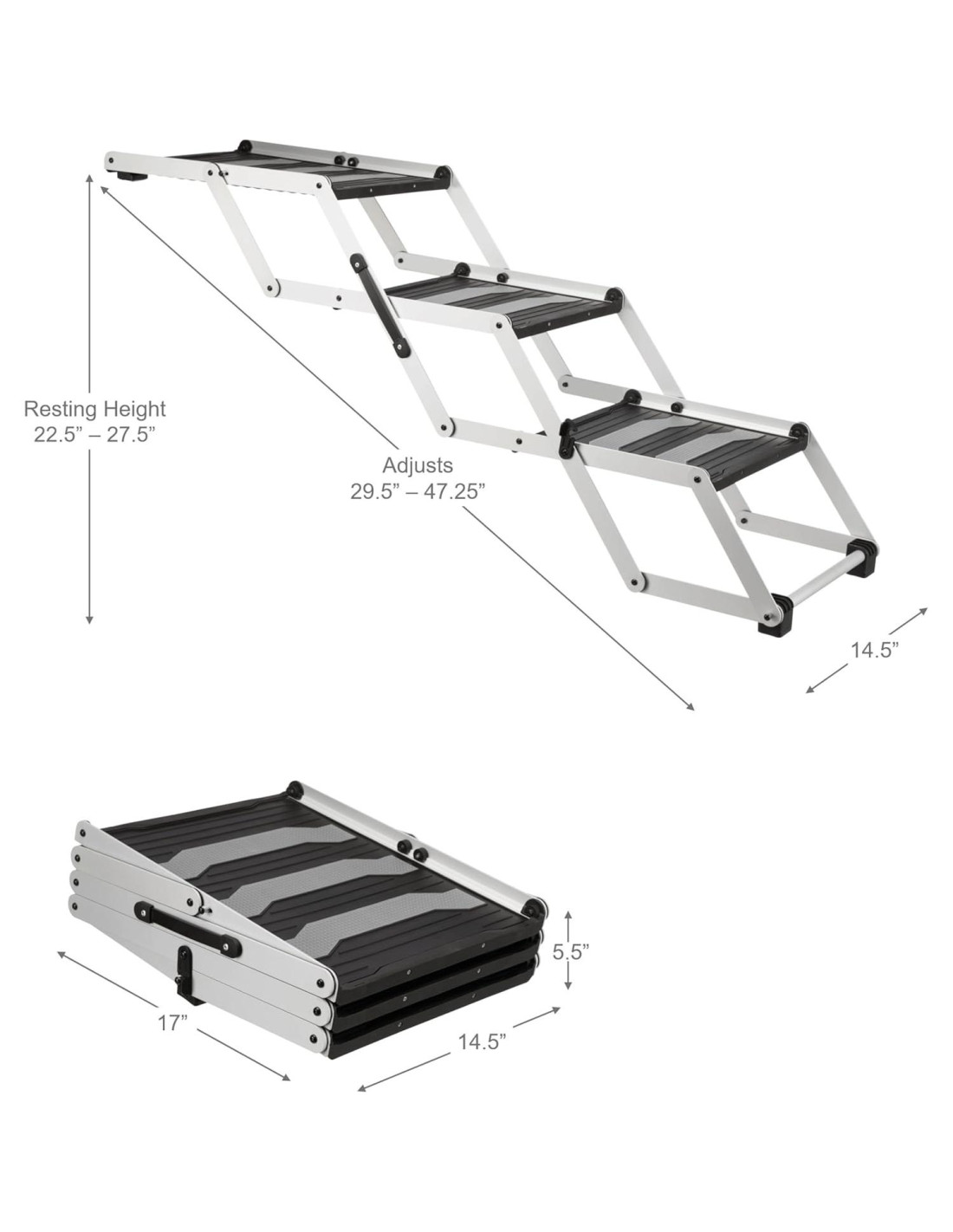 - Altura Ajustable y Colapsable - La altura de estas escaleras plegables se puede ajustar para adaptarse perfectamente a la altura que necesitas (de 49.5 cm a 69.5 cm); tu perro puede caminar cómodamente hacia tu vehículo o subir a tu sofá o cama con facilidad