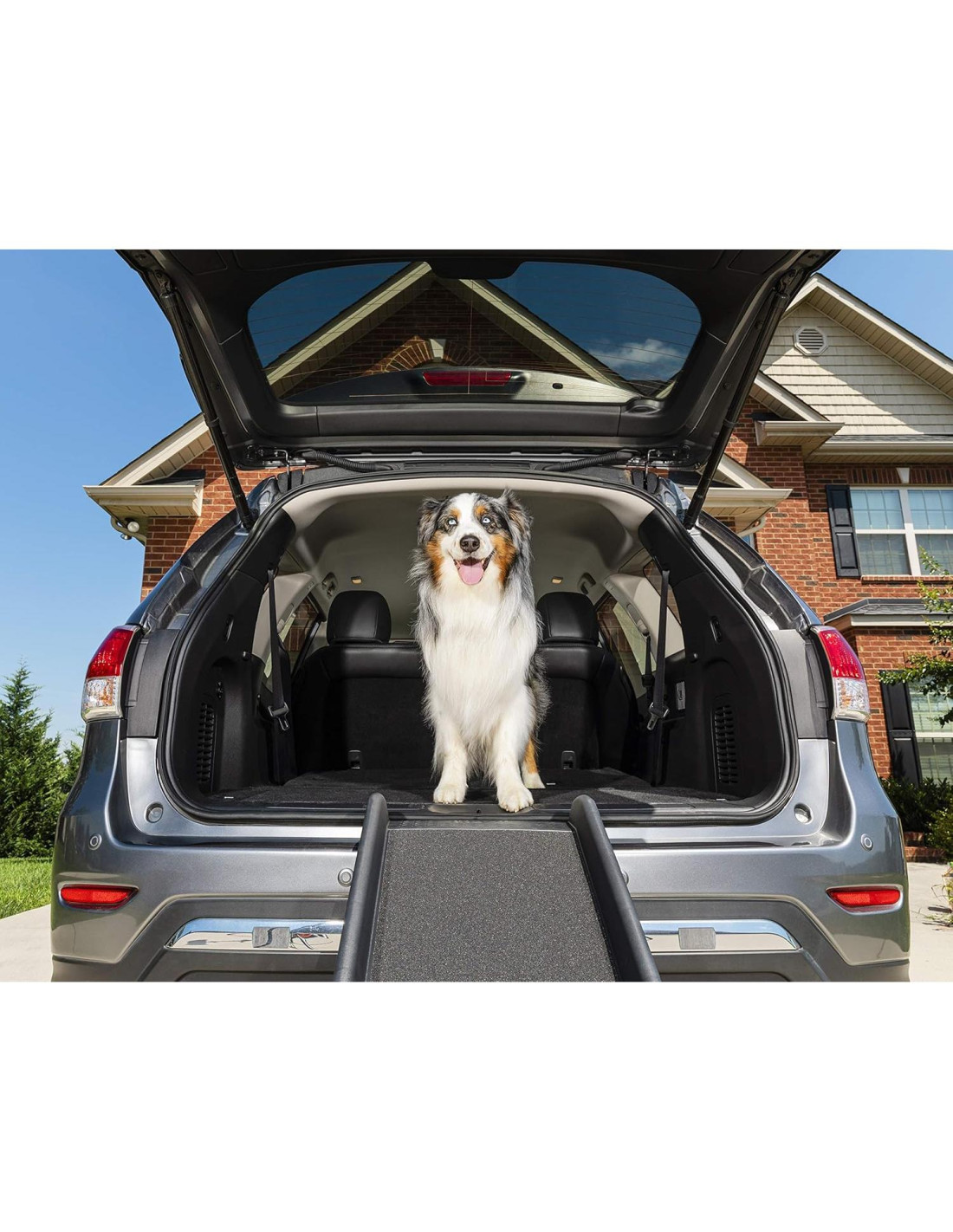 - Rampa de Viaje Plegable: Diseñada para adaptarse a la mayoría de modelos de SUV, furgonetas, autos y camiones, esta rampa ligera y plegable pesa solo 4.54 kg pero es lo suficientemente resistente para soportar perros pequeños, medianos y grandes de hasta 68.18 kilogramos; Dimensiones completas 157.48 cm L X 40.64 cm W X 10.16 cm H