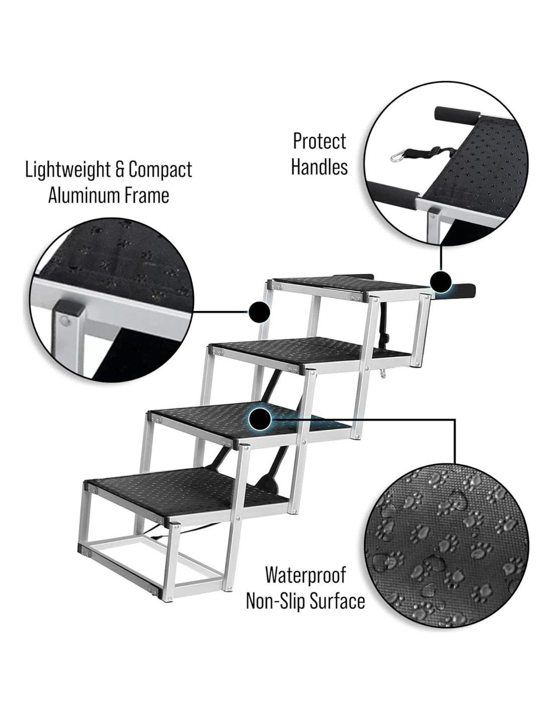 - COMODIDAD PARA TU COMPAÑERO Rampa de escaleras plegable con una suave inclinación que ejerce menos presión sobre las articulaciones de tu perro que las rampas típicas para perros en camiones al acceder a tu vehículo, sofá o cama alta.
