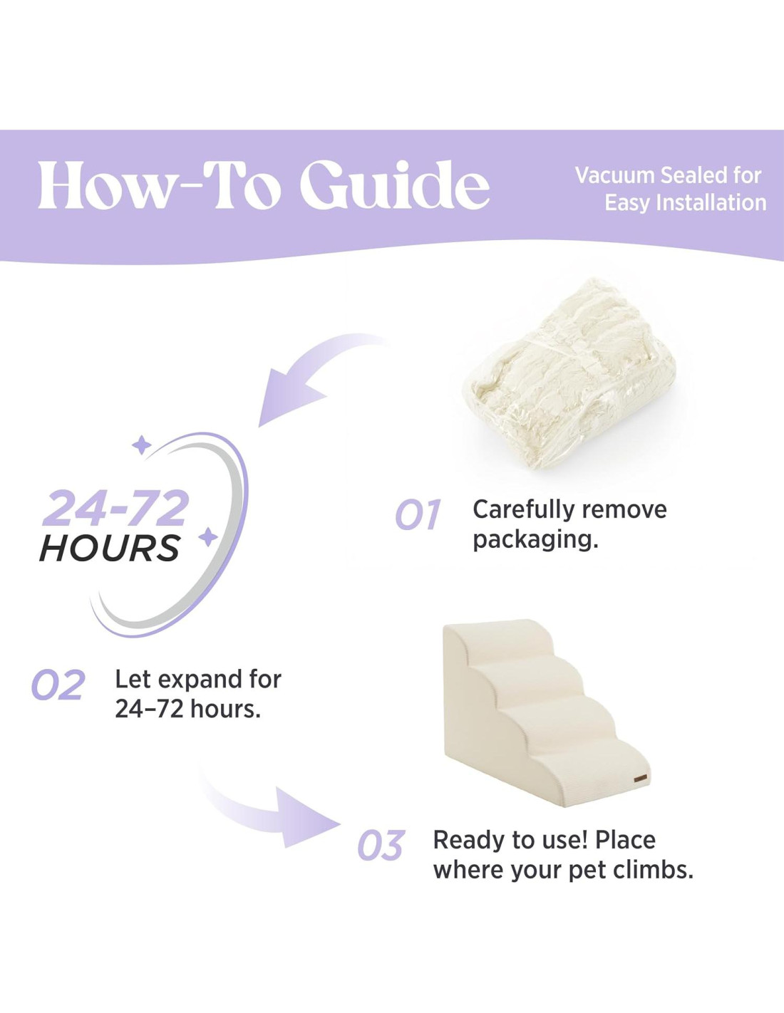 - Fácil de Limpiar: Mantener estas escaleras para perros frescas y ordenadas es muy fácil. Simplemente retira el núcleo de espuma y lava a máquina la funda exterior por separado en agua fría en un ciclo delicado. Ten en cuenta que el núcleo de espuma no debe lavarse ni secarse a máquina para asegurar un uso duradero y comodidad para tus mascotas.