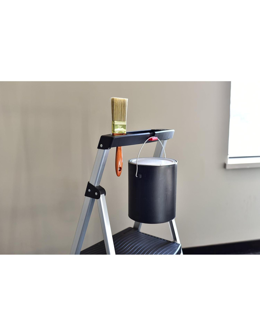 - PARTE SUPERIOR DE PROYECTO INCORPORADA - La conveniente parte superior de proyecto incorporada de la escalera de paso ligera de aluminio Rubbermaid de 2 peldaños es perfecta para sostener herramientas, hardware u otros materiales mientras trabajas.
