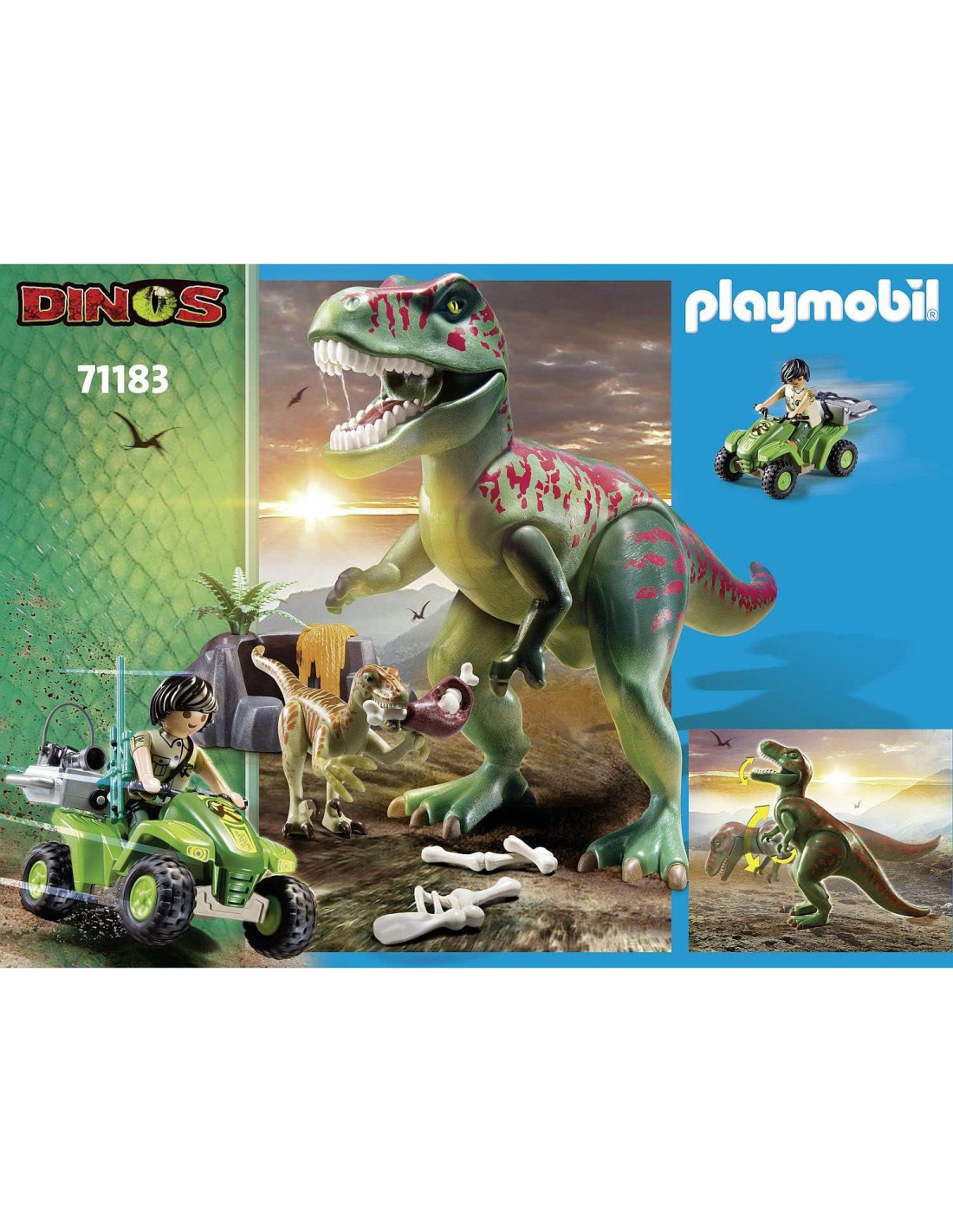 - Contenido: 1x PLAYMOBIL Ataque del T-Rex, juego de figuras de 20 piezas con instrucciones: 1 quad, 1 figura, 2 dinos, 16 accesorios, Material: plástico, Se puede montar individualmente, Peso: aprox. 414 g, 71183