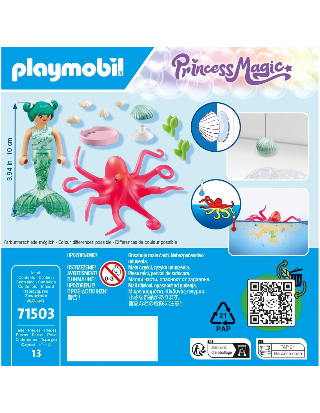 - Contenido: 13 piezas con instrucciones: 1 figura, 1 animal, 11 accesorios adicionales; materiales hechos de plástico; LxWxH: Pulpo: aprox. 5.59 x 5.59 x 1.61 in (14,19 x 14,19 x 4,09 cm), 71503