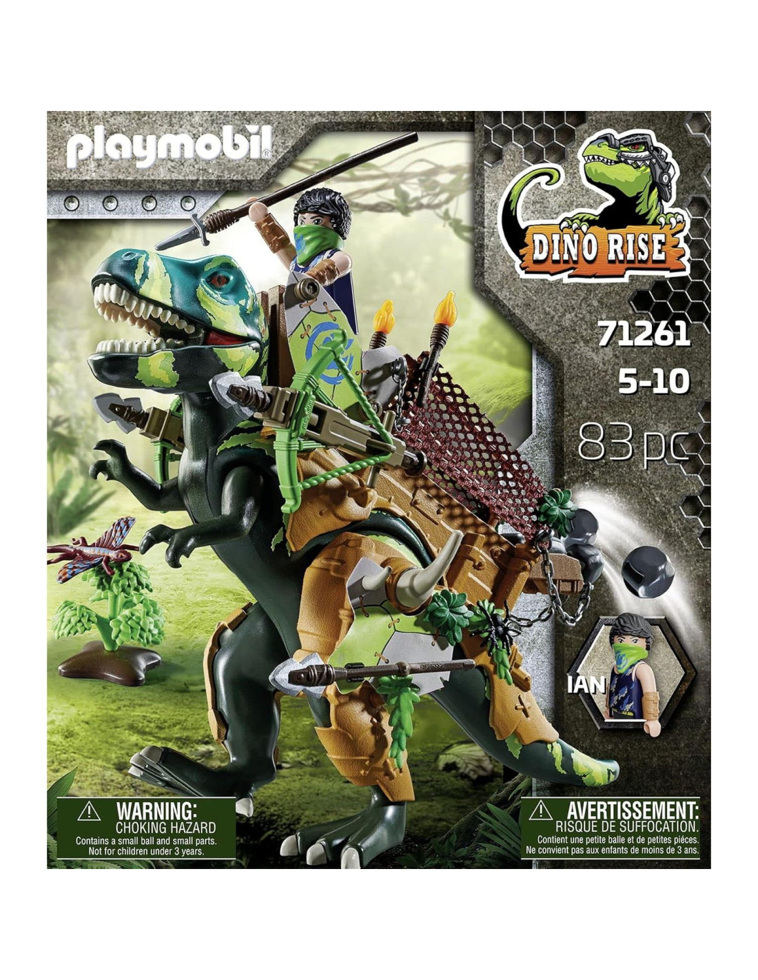 Únete al T-Rex y su amigo Ian para la batalla en la jungla. Este T-Rex camuflado viene equipado con dos cañones funcionales. Una tapa en su espalda sostiene piedras y al abrirse permite que las piedras caigan. Ian se sienta fácilmente en la parte superior del T-Rex para tener una vista para la batalla. Juega con este set por sí solo o combínalo con otros sets de juego de Dino Rise (#71260-71265) para aún más diversión de dinosaurios. El set incluye una figura, dos cañones y otros accesorios. Recomendado para edades de cinco a diez. Advertencia. Peligro de asfixia. Piezas pequeñas. No apto para niños menores de 3 años.