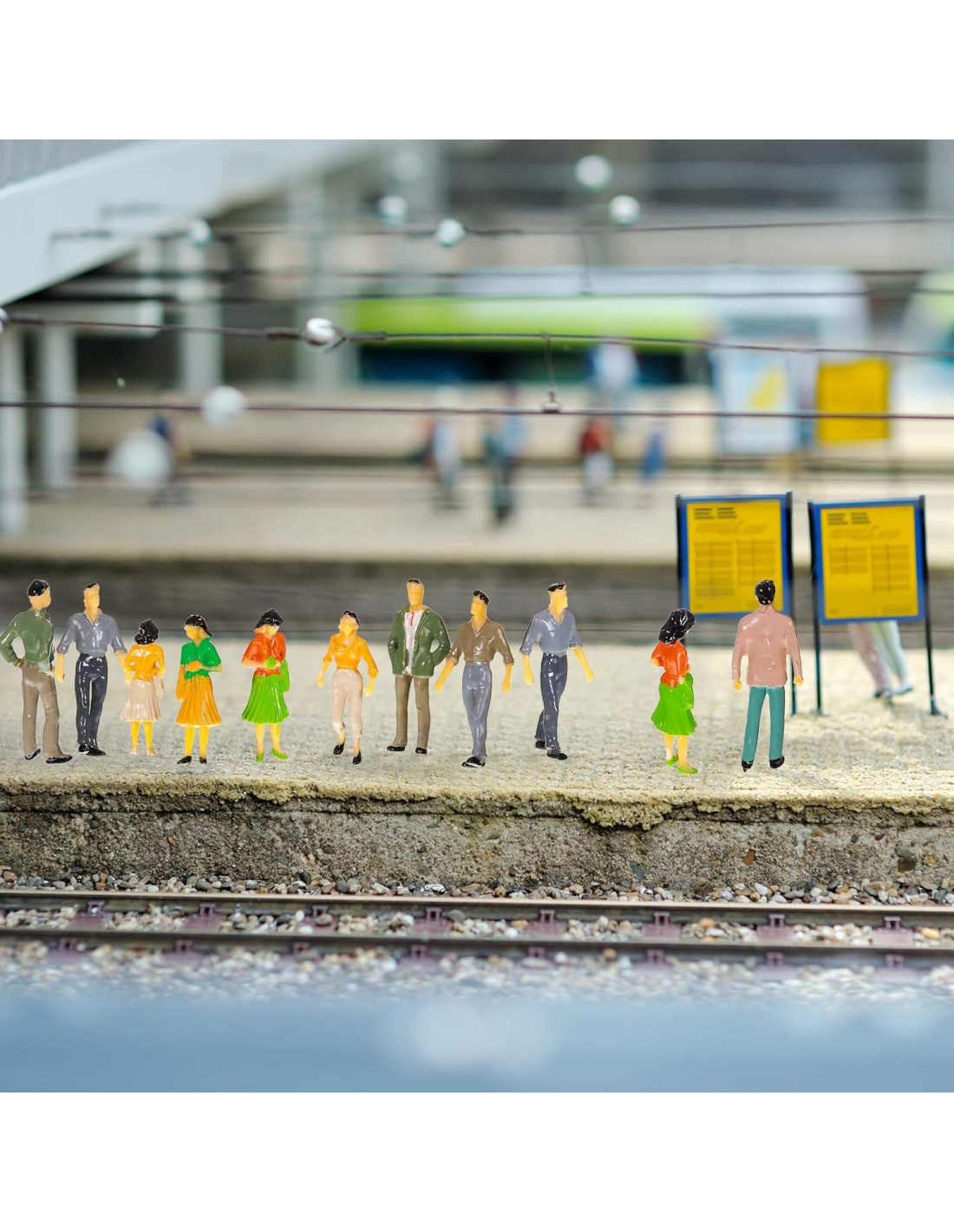 - Accesorios de Modelo Abundantes: recibirás 20 modelos de pie y 10 modelos sentados de personas en miniatura 1: 50, 5 luces temáticas de jardín, 11 árboles en miniatura, incluyendo 5 en 1.97 inches (5 cm), 4 en 2.36 inches (6 cm) y 2 en 3.15 inches (8 cm), 5 bancos de color marrón, 4 céspedes en 7.87 x 7.87 inches (20 x 20 cm), 5 coches en 1: 100, 2 autobuses en colores azul y amarillo, 1 hoja de pegatinas grises y 1 hoja de línea marcada 1: 50; La cantidad es suficiente para que puedas crear paisajes ferroviarios