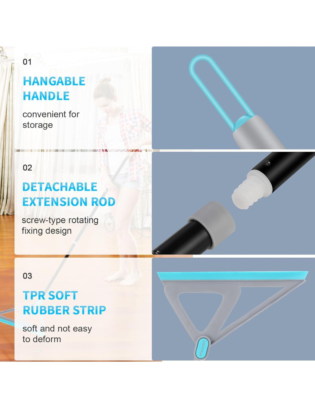- DISFRUTA DE UN DESLIZAMIENTO SIN RESISTENCIA - Se adapta a diversas superficies y pisos. Puede usarse como un limpiaparabrisas de piso y ventana, limpiador de agua, y escoba para empujar en el garaje, terraza, ducha, baño y ventanas exteriores.