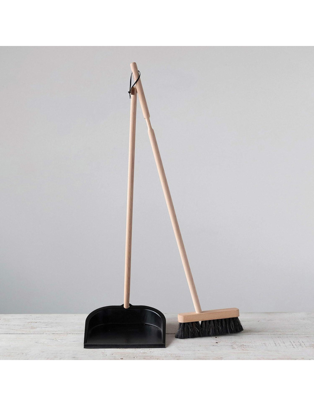 - Nombre del modelo: Juego de Escoba de Madera de Haya y Recipiente de Metal de Pie Creative Co-Op, Natural y Negro