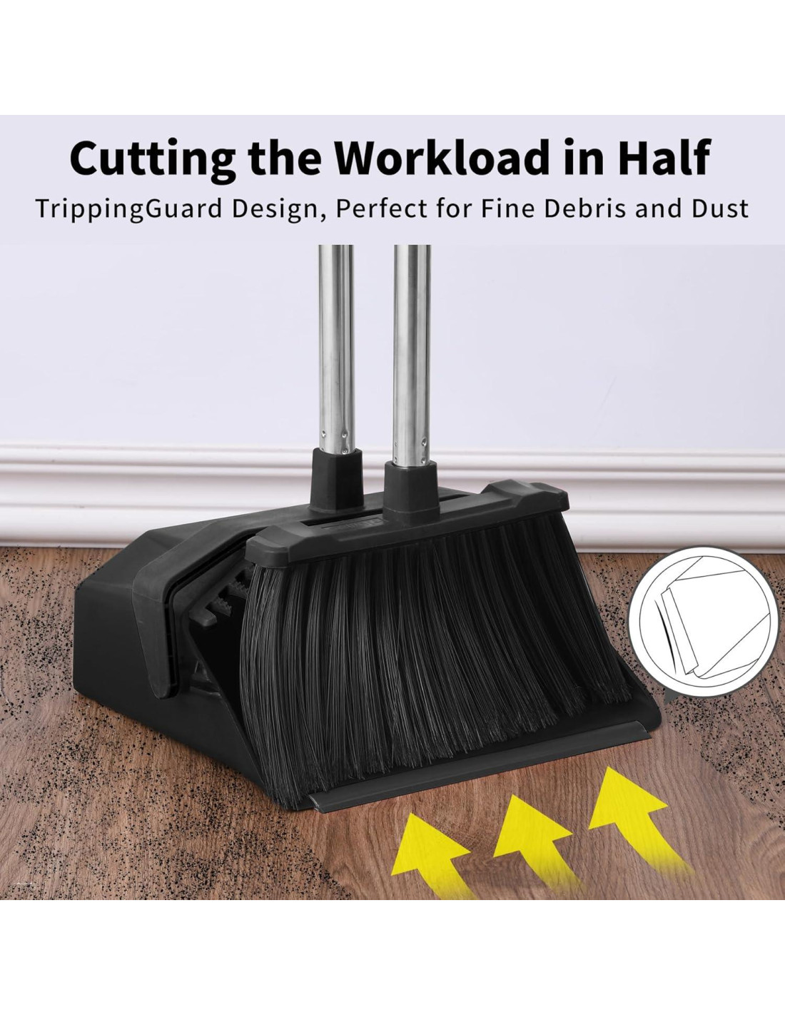 - Kit de Escoba y Recogedor que Ahorra Espacio: El conjunto de escoba y recogedor, con su diseño único TrippingGuard del mango del recogedor, proporciona un almacenamiento vertical más seguro. El recogedor de pie en almacenamiento cubre aproximadamente la misma área que una postal. Mantén un hogar o espacio de trabajo limpio y ordenado en todo momento. El diseño liviano de la escoba y el recogedor de exterior te proporciona un vaciado y cierre del recogedor sin esfuerzo.