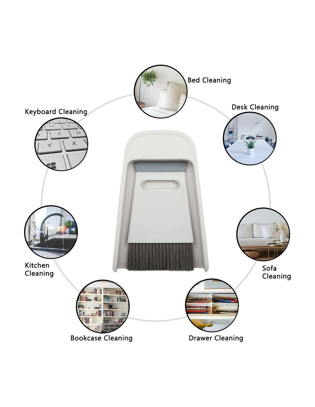 - [Flexible y Práctico] Como mini servicio de limpieza, el cepillo de cerdas y el limpiador con el combo de recogedor son geniales para el uso diario. Y es perfecto para encimeras, teclados, gabinetes, muebles, interiores de automóviles o cualquier superficie que necesite una mano amiga.