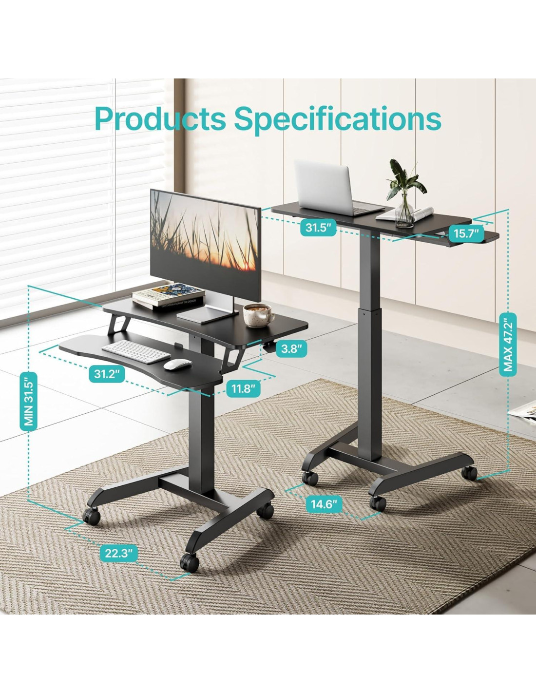 - [Diseño Doble Nivel de Comodidad] Utilice nuestro escritorio móvil de pie de doble nivel para un espacio de trabajo libre de desorden y eficiente: coloque su lámpara, calendario o decoración en el nivel superior, mientras mantiene su teclado, mouse, bebida y tableta en el nivel inferior. La superficie plana y sin ranuras es suave para sus muñecas, y este pequeño escritorio rodante de pie hace que las largas horas de trabajo sean más cómodas.