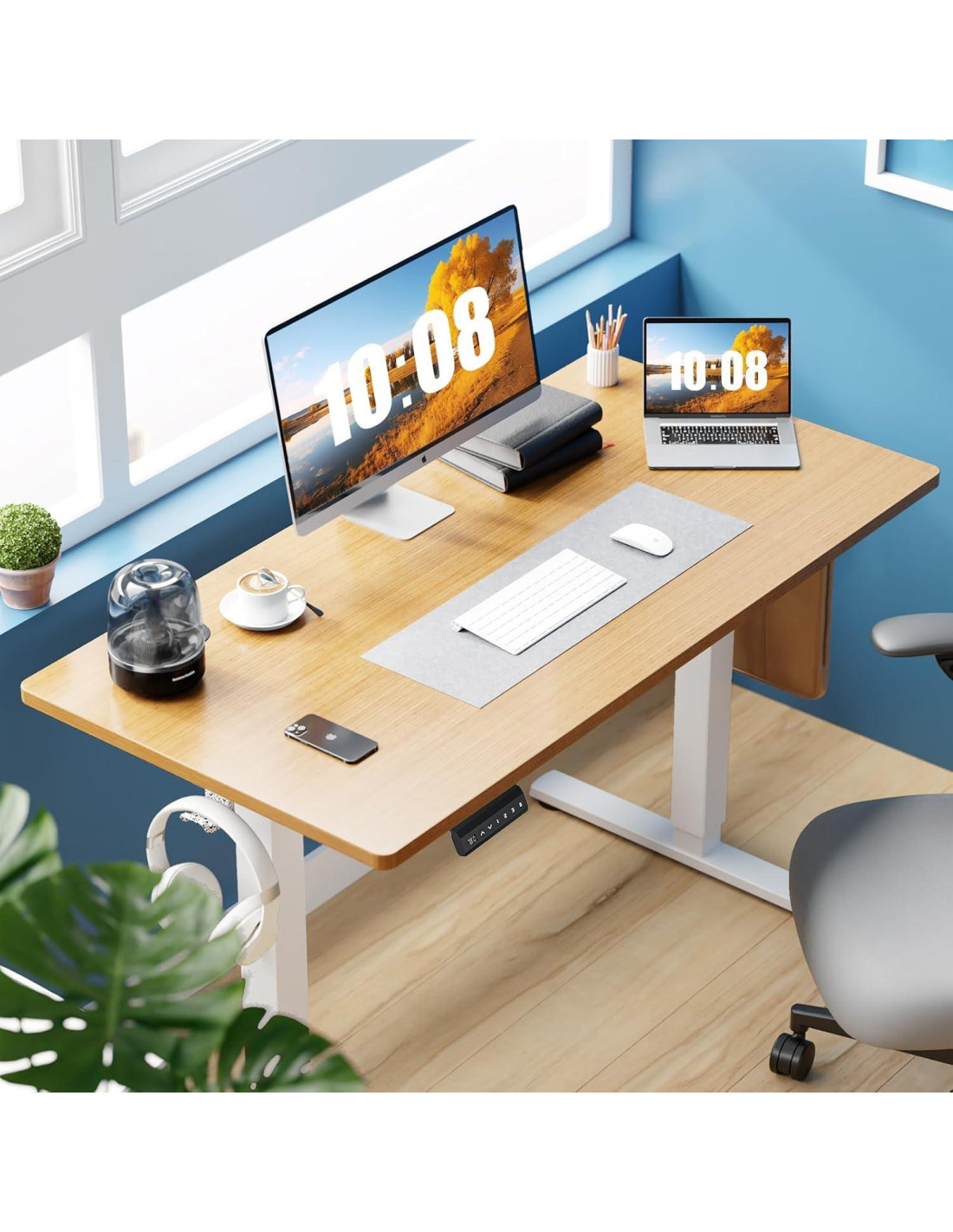 - Presets de memoria inteligentes para comodidad instantánea: Personaliza tu espacio de trabajo con 3 configuraciones de altura programables utilizando el intuitivo controlador LED. Guarda tus posiciones favoritas y cambia con un toque, sin más conjeturas ni ajustes manuales. ¡La ergonomía hecha simple!