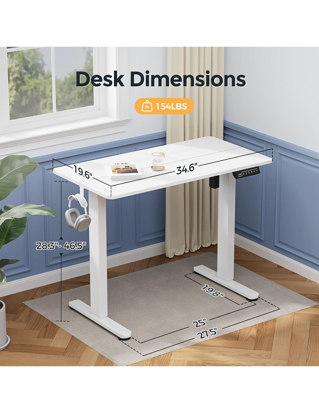 - Escritorio de Pie Pequeño de 35" (88.9 cm): La superficie del escritorio mide 35" (88.9 cm) x 20" (50.8 cm), fabricada con material de madera ecológica. Su tamaño compacto está diseñado para una fácil colocación en espacios pequeños o rincones. Es una opción ideal para configuraciones de habitación limitadas