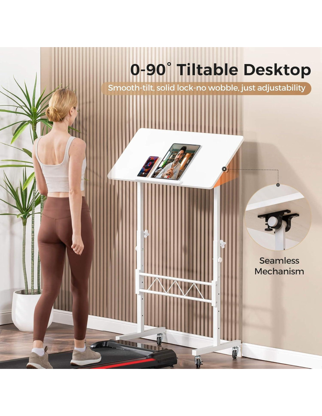 - [Escritorio Móvil Portátil] Las ruedas de goma PU suaves ruedan silenciosamente mientras protegen las superficies de madera/cerámica de rasguños. Transición fácilmente entre espacios de trabajo con bloqueos de rueda de un toque que mantienen tu escritorio firme durante su uso. Perfecto para entornos sensibles al ruido como oficinas en casa o espacios compartidos - muévete libremente sin interrupciones