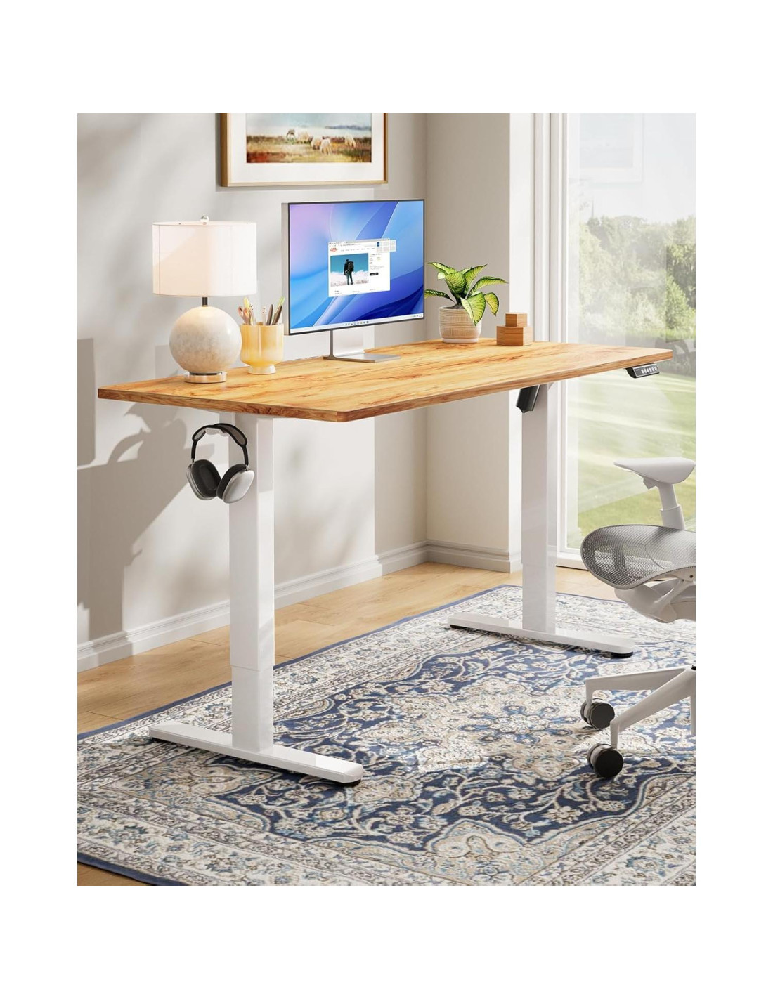 - Componentes incluidos: Escritorio de Una Pieza (escritorio no dividido), Marco de Escritorio Eléctrico Potente de 79.83 kg, 2 Ganchos para Auriculares, Panel de Control Multifuncional LED