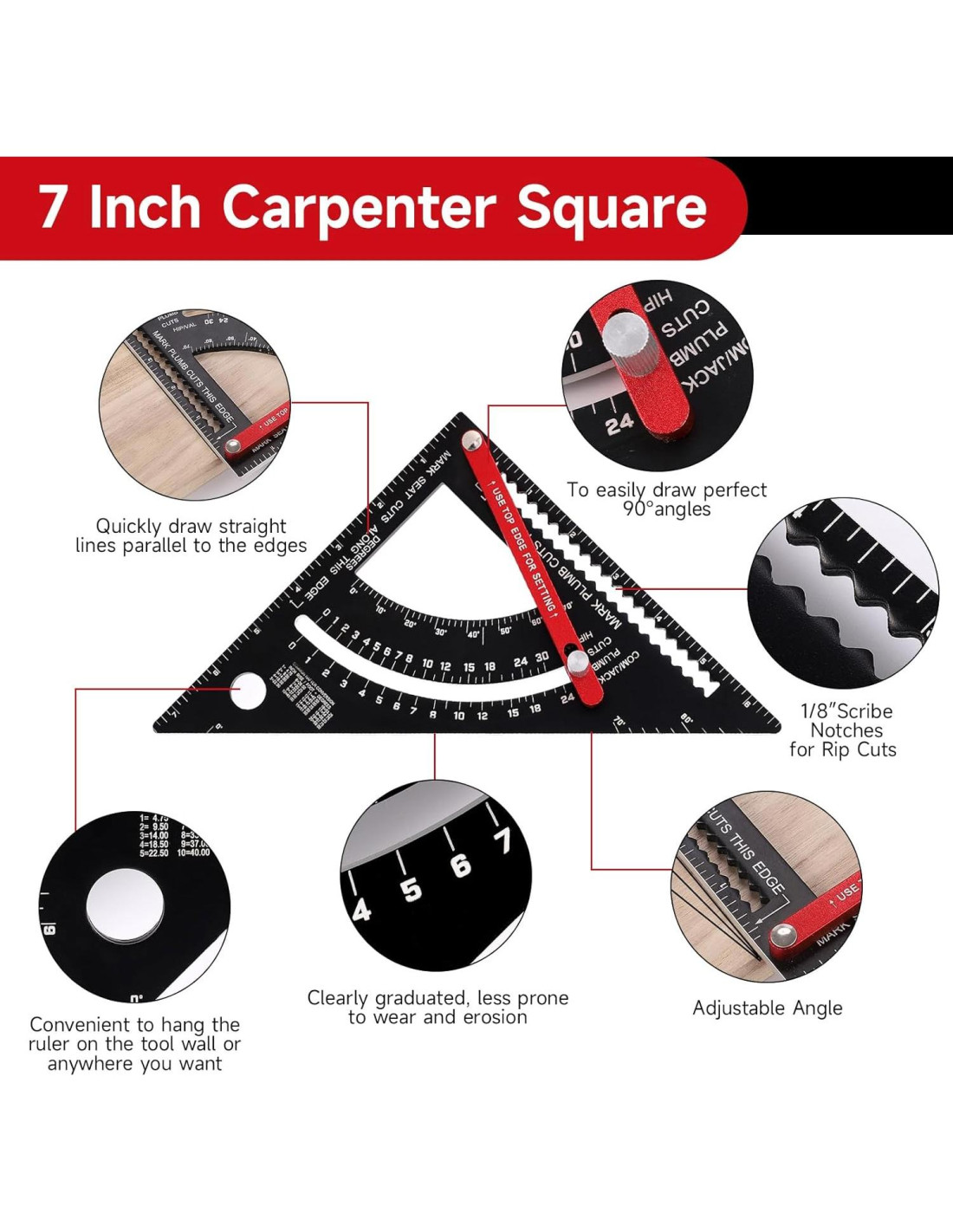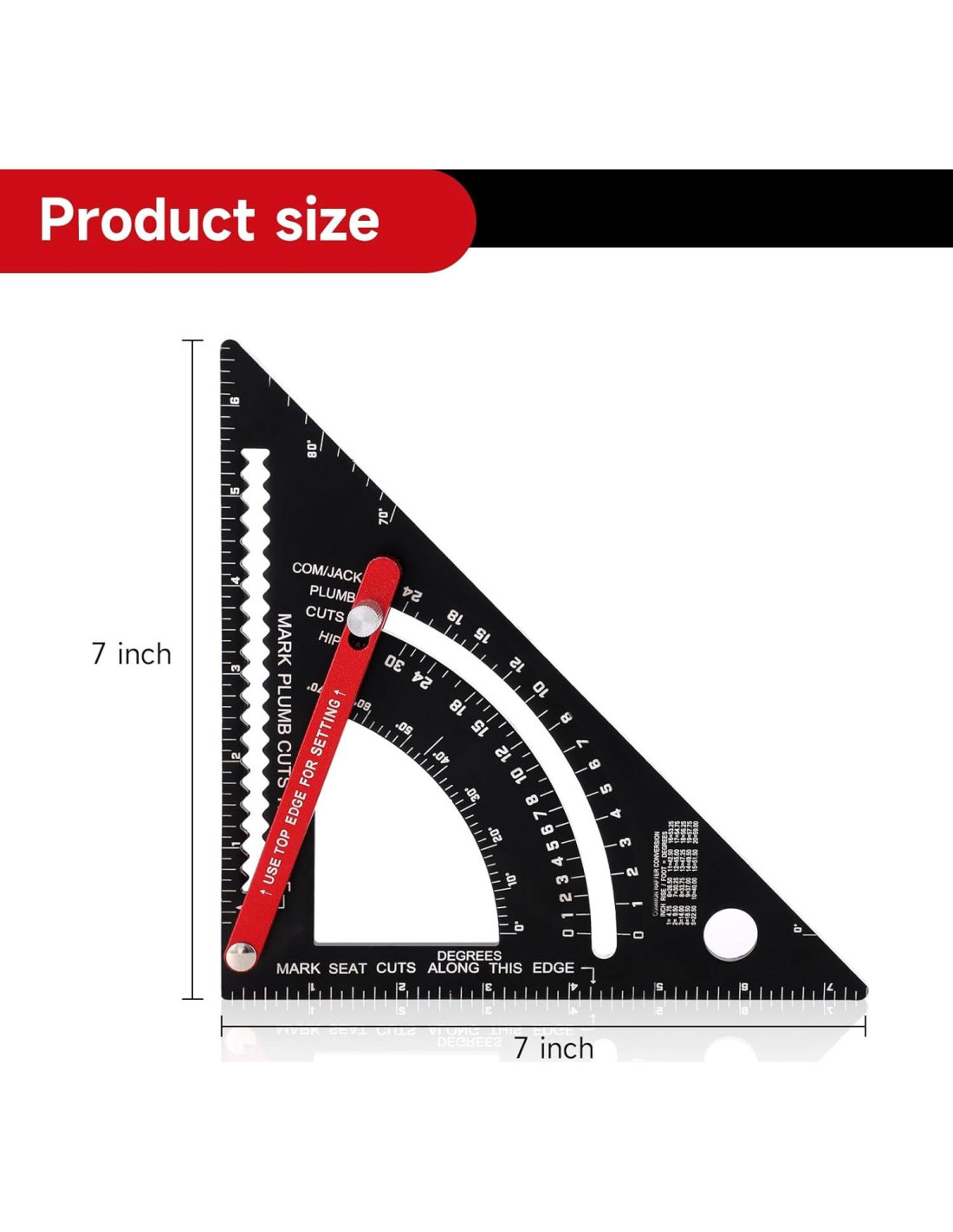 - Escuadra de Carpintero de Precisión: Regla triangular de carpintería ajustable de alta calidad de 7 pulgadas (17,78 cm) hecha de aluminio, construcción de aleación de aluminio resistente, fuerte, confiable y duradera. Anticorrosión, ligera y fácil de transportar.