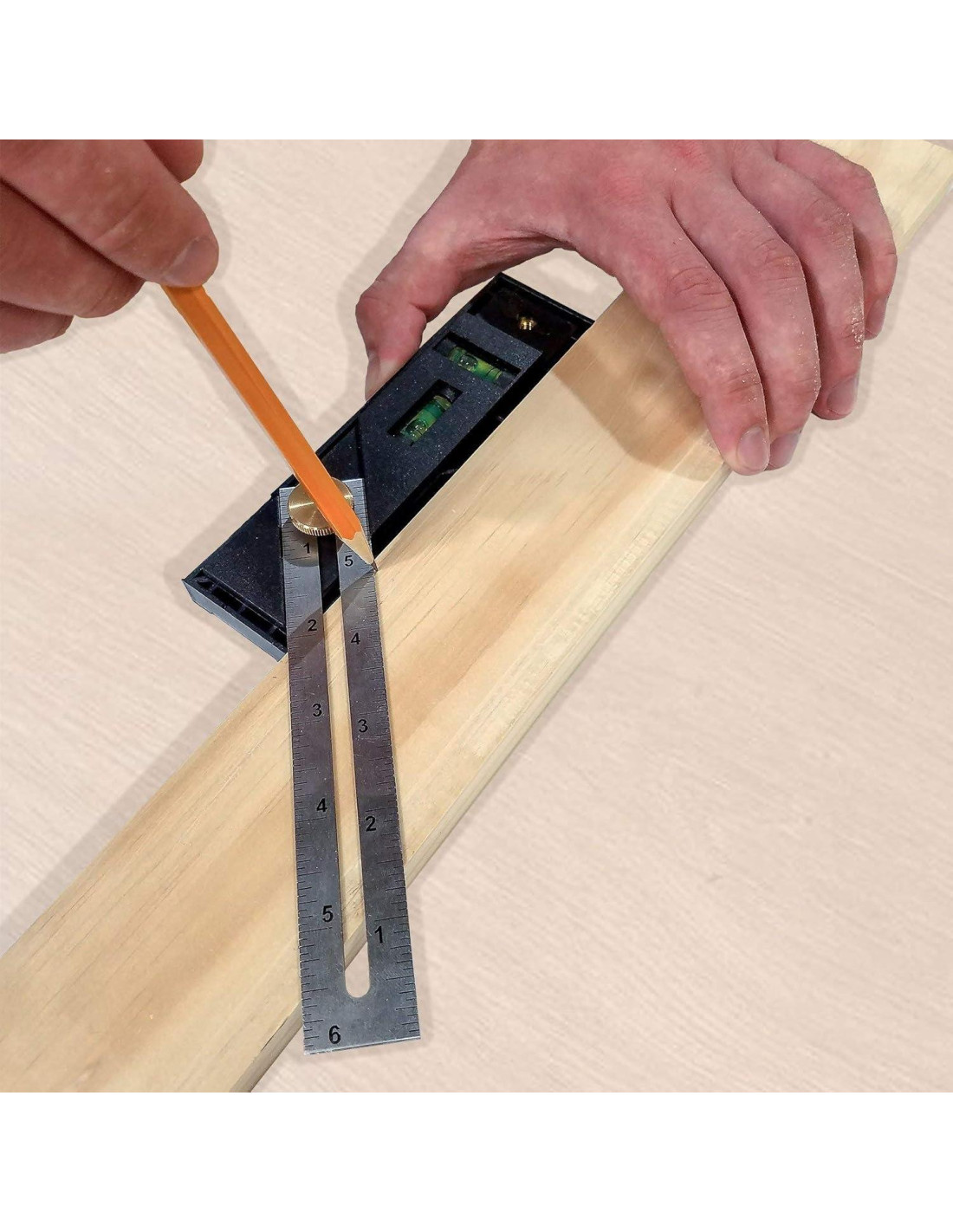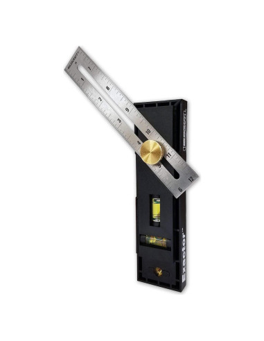 - Herramienta de medición y marcado de 9 en 1 con niveles duales incorporados y un bisel deslizante