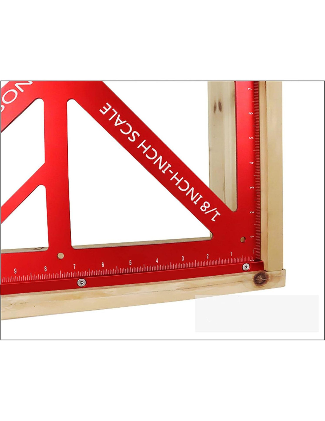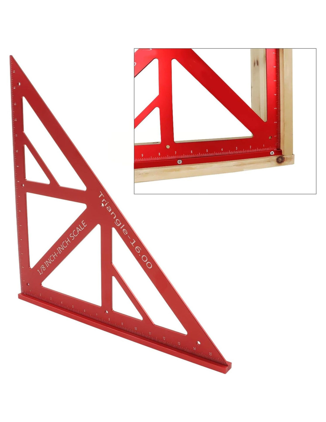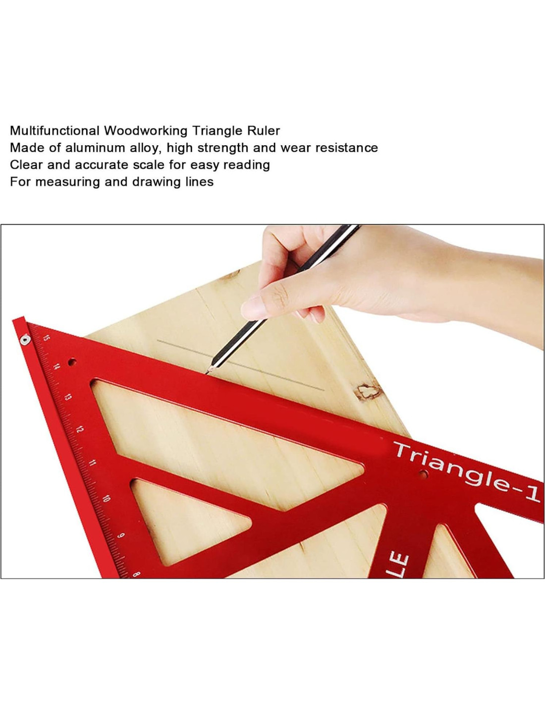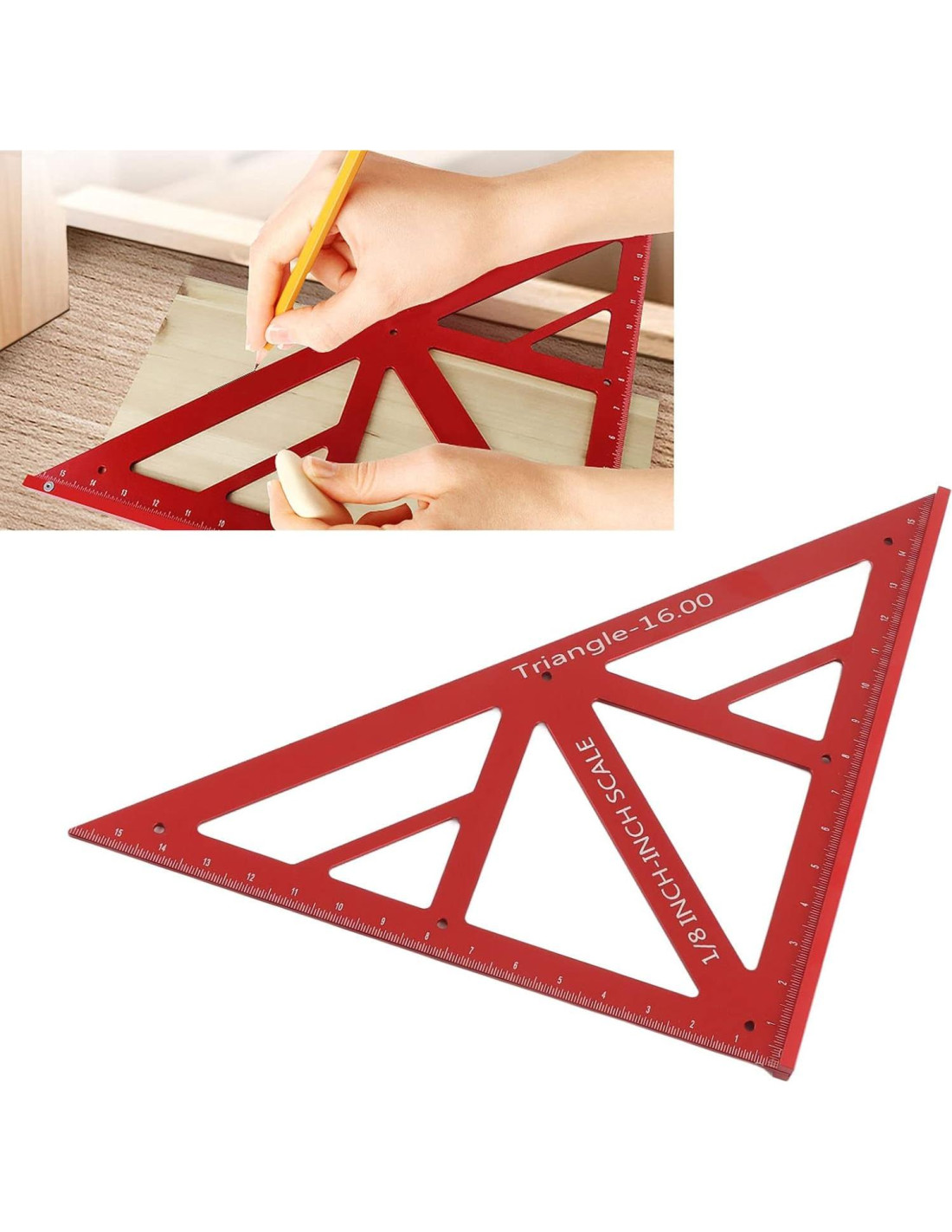 - CALIDAD ALTA DE TRIÁNGULO DE ALUMINIO: Triángulo métrico hecho de y fabricado con aluminio fuerte, que es ligero y conveniente. Buena resistencia a la oxidación, no fácil de romper, cada regla triangular está engrosada y tiene alta dureza. Tri-, metro, transportador, marcador de línea y sierra todo en una herramienta.