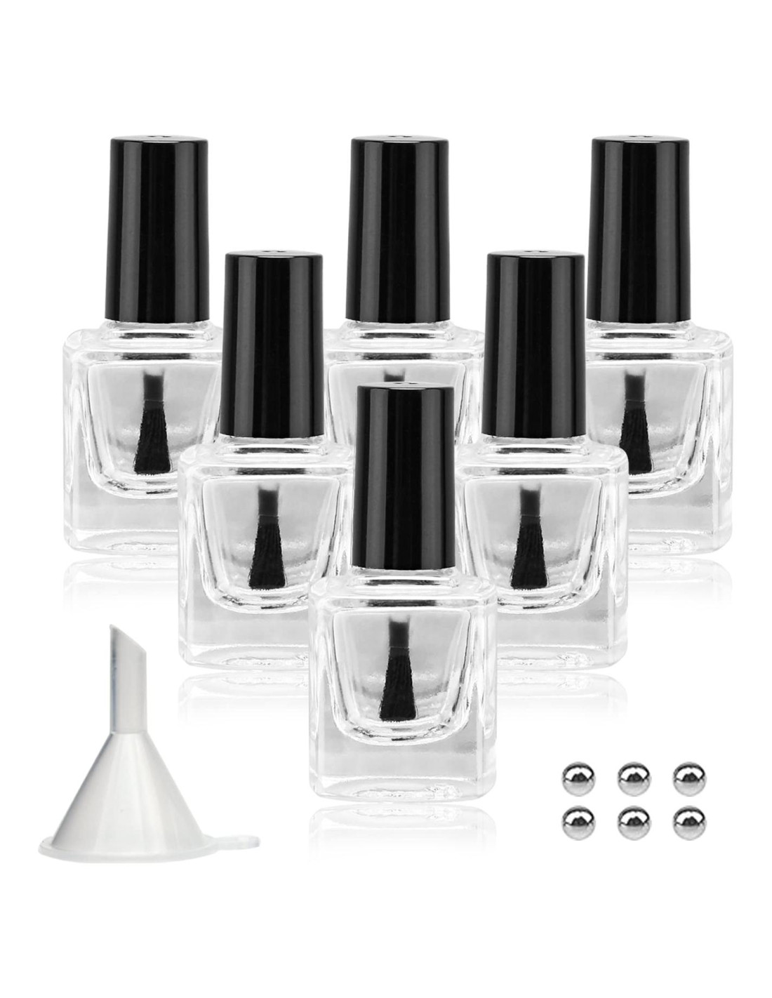 - [Contenido del Paquete]: 6 x Botellas de Vidrio Vacías de Esmalte de Uñas de 10ML con Brocha, 6 x Bolas de Mezcla, 1 x Embudo
