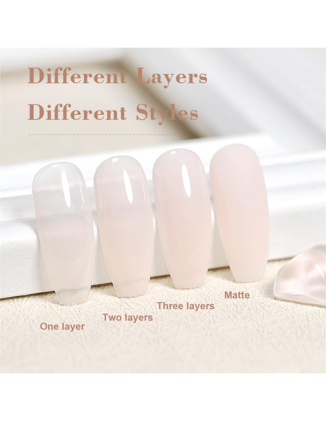 - APLICACIÓN FÁCIL Y LARGA DURACIÓN: Este esmalte de gel transparente rosa nude está hecho con ingredientes de resina natural y una fórmula no tóxica, por lo que este esmalte de gel no causará manchas, grietas o astillas. Puede durar más de 21 días con un brillo perfecto bajo una aplicación adecuada