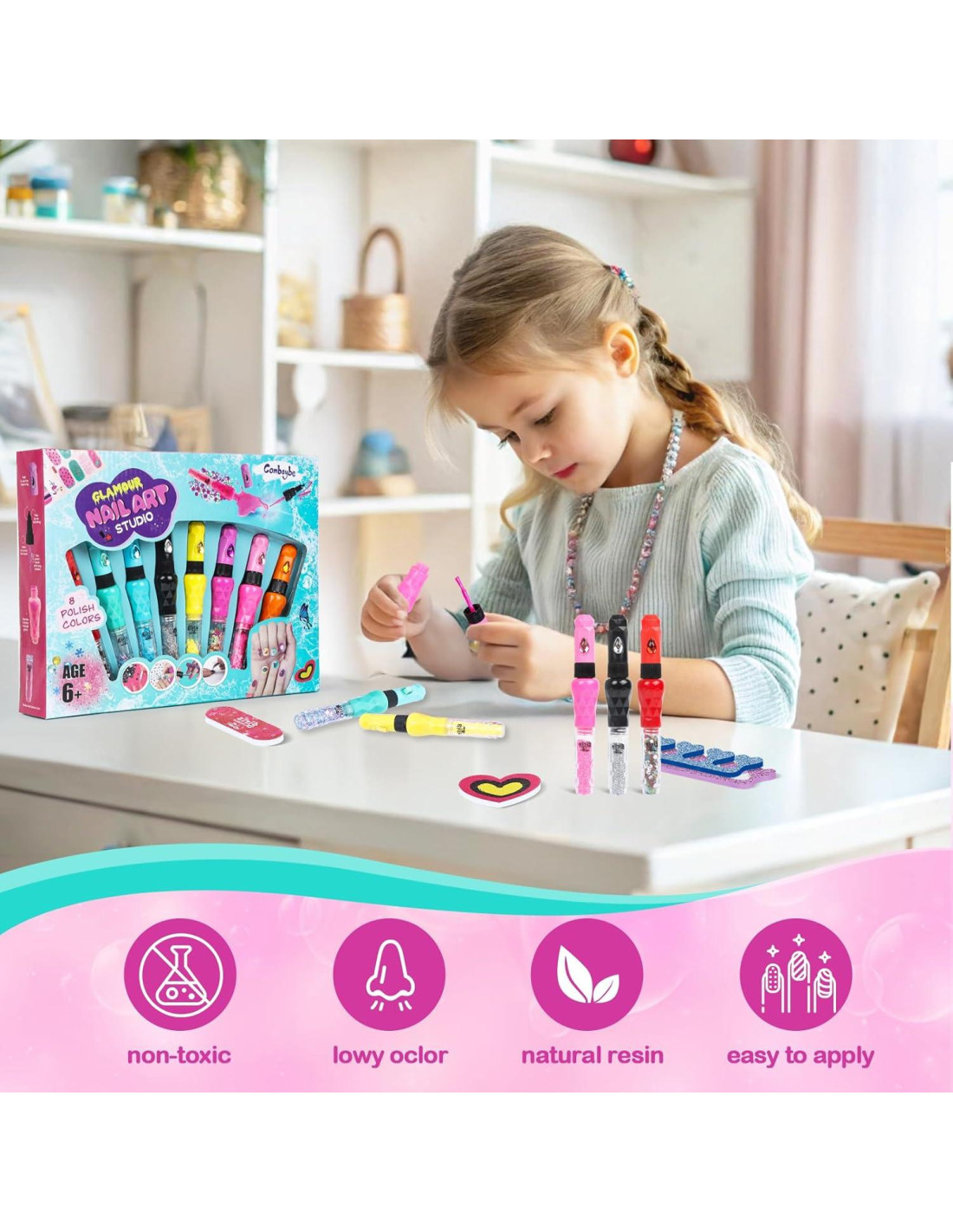 - Diversión de Unión para Padres e Hijos: Crea momentos especiales de unión y fomenta la creatividad de tu hija con este divertido esmalte de uñas para niñas. Al hacer manicuras juntas, este juguete de arte para uñas mejora sus habilidades motoras finas y destreza. Con tantos accesorios y opciones para un arte de uñas único, ¡harás recuerdos diseñando estilos de maquillaje lindos!