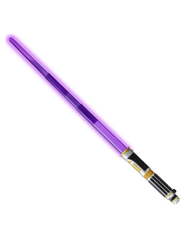 El sable de luz es el arma definitiva de los heroicos Jedi y los siniestros Sith. Cuando estas dos fuerzas del bien y del mal se encuentran en batalla, el choque de sus hojas resuena a lo largo de la galaxia. ¡Toma tu sable de luz y únete a la lucha! ¡Diseñado para parecerse exactamente al sable de luz de Mace Windu! ¡Presiona el botón para encender el arma y extiéndela a más de 91.4 cm de longitud! ¡Presenta efectos de sonido electrónicos reales de la película, incluyendo increíbles sonidos de choque de batalla y zumbidos! ¡Los sonidos activados por movimiento te colocan justo en medio de la batalla entre los heroicos Jedi y el Lado Oscuro de la Fuerza!
