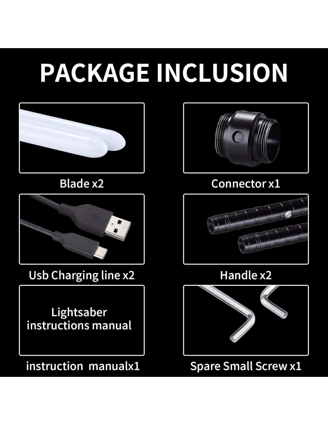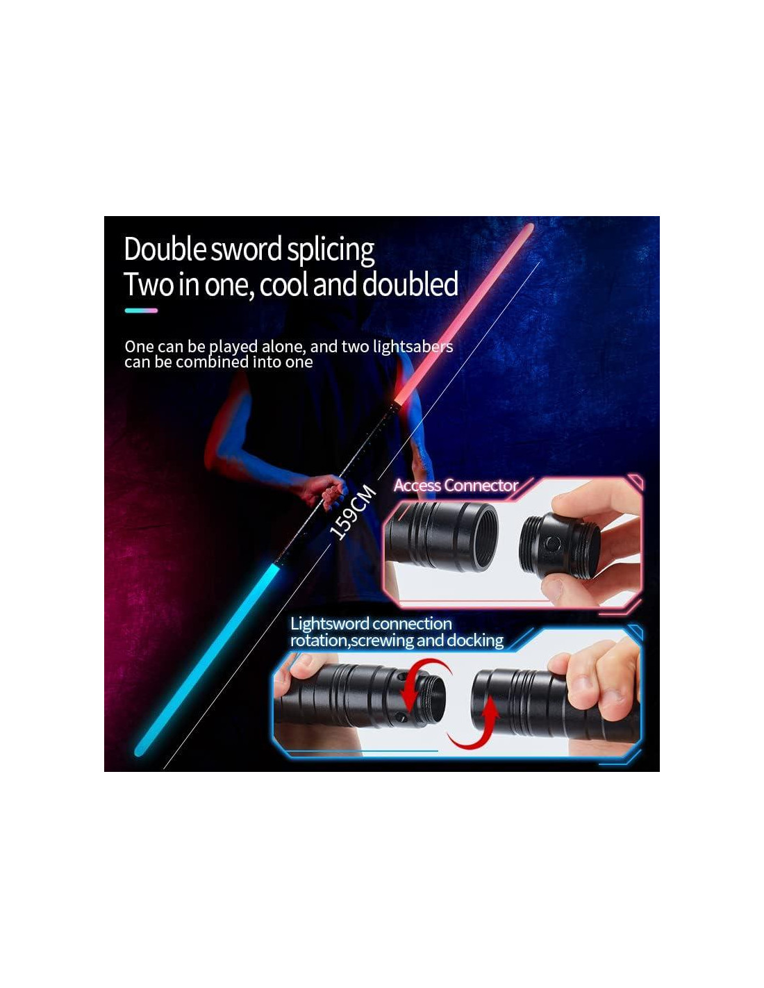 - Sable de Luz Dual 2-en-1. A través del conector, puedes combinar 2 hojas de sable de luz en una espada de doble filo, la hoja y la empuñadura también se pueden desmontar. El sable de luz Aoglenic está hecho de una empuñadura de metal de aleación de aluminio mate y una hoja de PC duradera para mayor durabilidad.