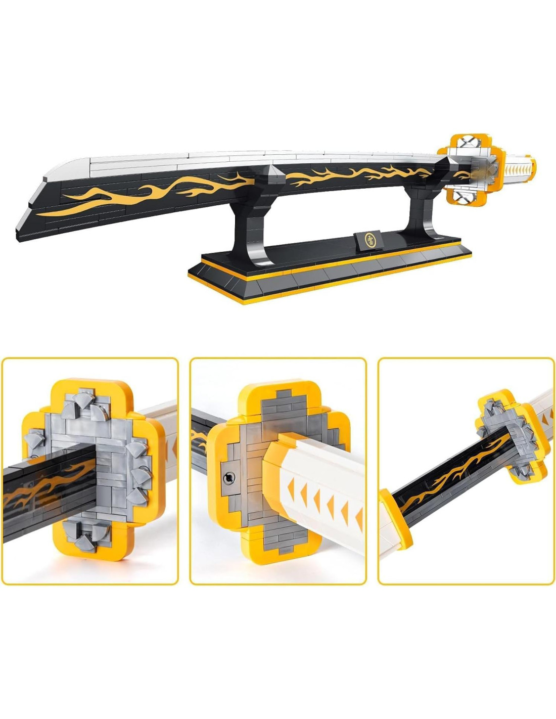 - [Tamaño Perfecto] Esta espada de Zenitsu para Demon Slayer contiene 956 PCS, viene con una funda y un soporte. Esta espada de Zenitsu está compuesta de bloques de construcción de alta calidad. La longitud de 39 pulgadas (99.06 cm) la hace más cercana a una espada, dándote un agarre perfecto. Ten en cuenta que solo soporta un movimiento ligero, por favor no la agites con fuerza.