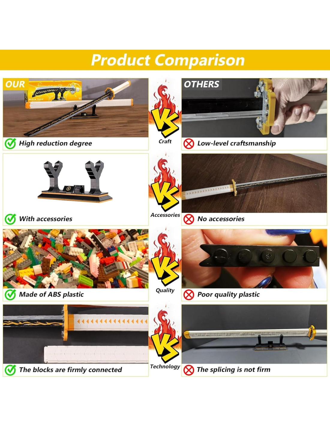 - Tamaño del Producto: Este conjunto de espada contiene 956 bloques. Mide 38.8 pulgadas (98.5 cm) de largo, lo que se asemeja más a una espada samurái. Cuando termines de ensamblarlo, la espada te dará una sensación de logro inigualable.