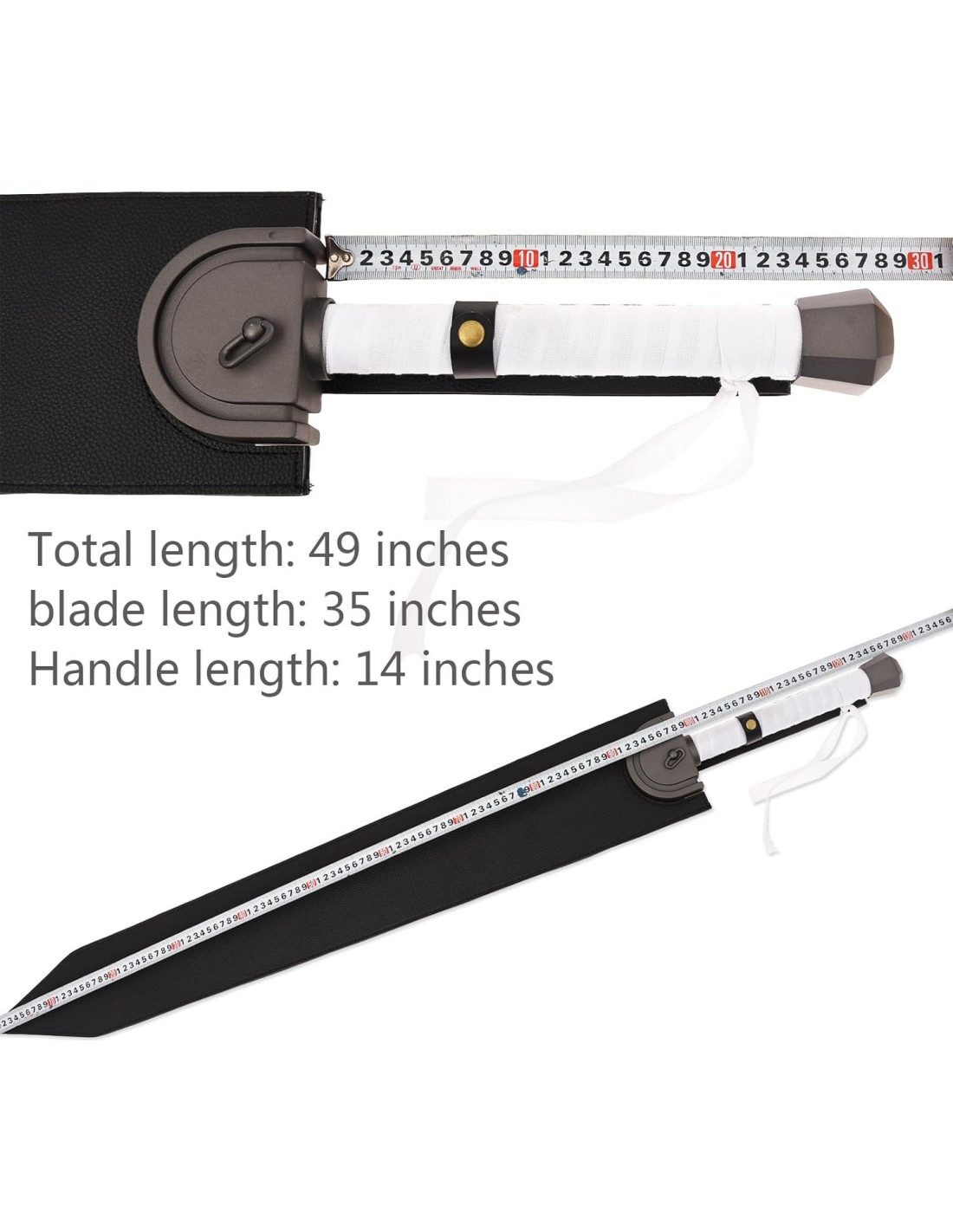 - 2.Tamaño Imponente: Con una longitud total de 49 pulgadas (124.46 cm) y una longitud de hoja de 35 pulgadas (88.9 cm), esta espada llama la atención y exuda poder.
