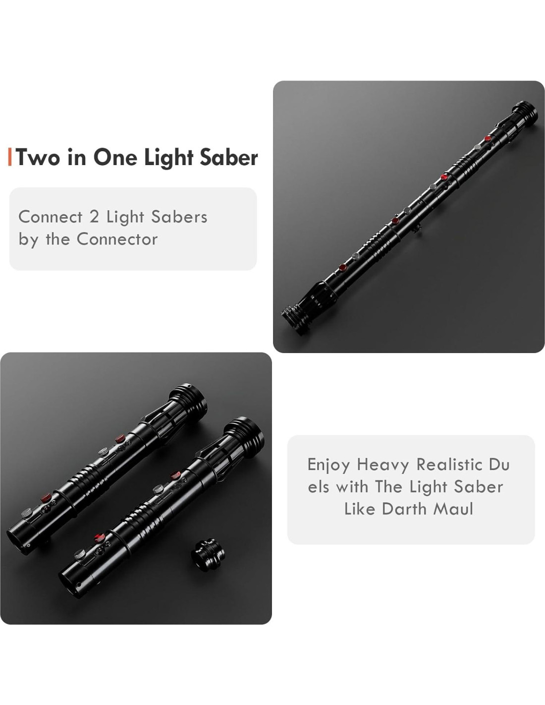 - [Efectos de Sonido y Efectos de Luz] 16 efectos de fuente de sonido; 3 efectos de luz (Estable, Pulso, Inestable); 3 configuraciones de volumen (Alto, Bajo, Silencio). El sable de luz tiene un sonido real, super sensible, más fuerte y más brillante. El sable de duelo RGB combina efectos de sonido de combate especiales y modos de destello para brindar una experiencia de combate vívida y realista.
