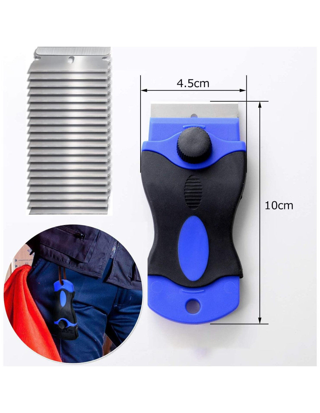 - Amplia aplicación. Raspador de plástico con cuchillas de rasuradora de acero inoxidable perfecto para aplicaciones de envoltura de vinilo, eliminación de pegatinas, calcomanías y etiquetas de vehículos, fácil de quitar vinilo, escombros, calcomanías, letreros, pegamento, etiquetas, adhesivos, grasa y pintura en vidrio, esmalte, cerámica, azulejos, metal y otras superficies diversas.