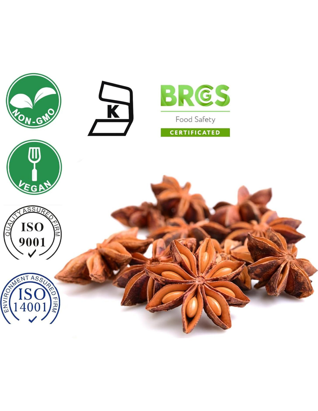 - 100% Naturaleza: El anís estrellado de colores brillantes a menudo contiene dióxido de azufre u otros químicos, pero nuestro anís estrellado es 100% natural, no OGM y libre de colorantes, sabores artificiales y conservantes.