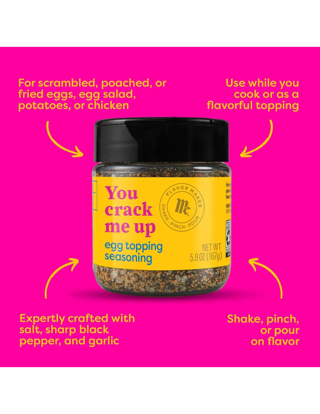 El sabor extraordinario comienza con el Condimento para Huevos Creador de Sabor de McCormick. Hecho con ingredientes mínimos, ofrece un impulso de sabor salado, picante, pimienta negra y ajo a verduras, pasta o carne mientras se cocina o en la mesa. Los huevos nunca volverán a ser aburridos, gracias al Condimento para Huevos. Simplemente gira la tapa para pellizcar, verter o agitar, y disfruta. Presentado en esta receta de Quiche de Verduras y Tocino Marinado, también es una forma fácil de sazonar papas o pollo antes de asar, hornear o freír al aire. ¿Prefieres sazonar en la mesa? Pellizca sobre las comidas para un extra de sabor memorable. Con esta solución todo en uno para una cocina inspirada y cotidiana, serás el mejor preparador de huevos.