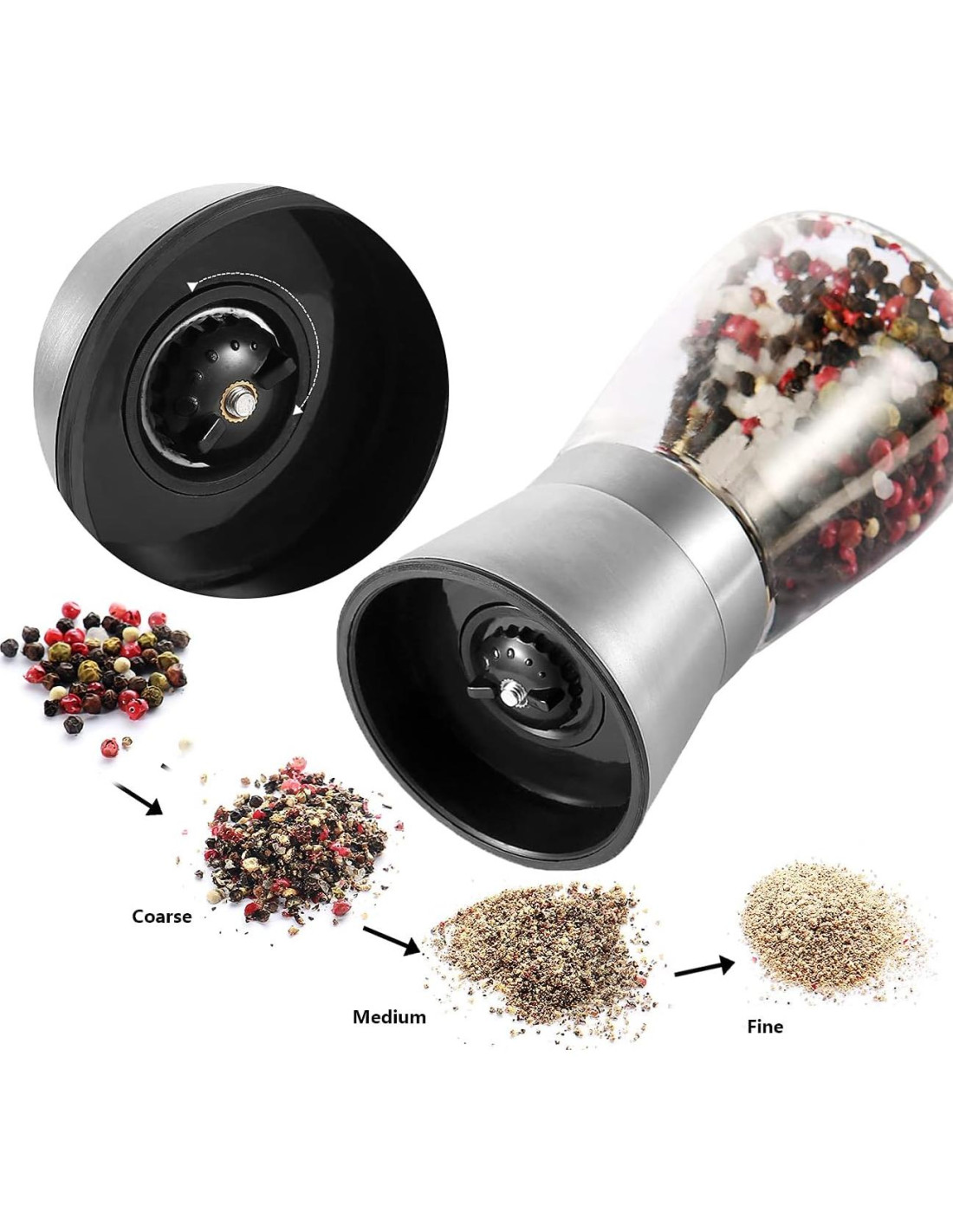 - Molinillo de cerámica duradero Nunca se oxida, no hay necesidad de preocuparse por el sabor oxidado en su sal o pimienta.