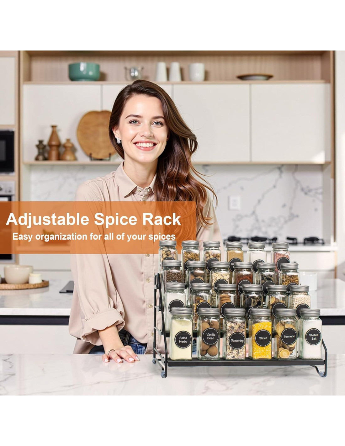 - [Profundidad ajustable expandible para más tamaños de frascos de especias] Este organizador de estantes de especias de 4 niveles para gabinete cuenta con estantes ajustables que puedes combinar libremente para adaptarse a frascos de varios tamaños o alturas. Ya sea que estés almacenando frascos de especias pequeños o botellas de condimentos altas, este estante de especias para gabinete ofrece el ajuste perfecto para mantener todo ordenado.