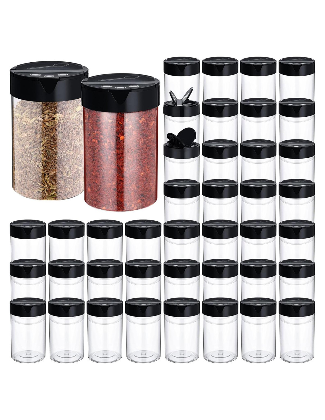 - Multiusos: estos frascos de especias de plástico con tapas para espolvorear son perfectos para almacenar especias secas, sal, pimienta, condimentos, mezclas de hierbas, polvo, purpurina, sales de baño, manualidades, etc. ampliamente aplicados en cocinas, comedores, hoteles, restaurantes, pastelerías y otros lugares