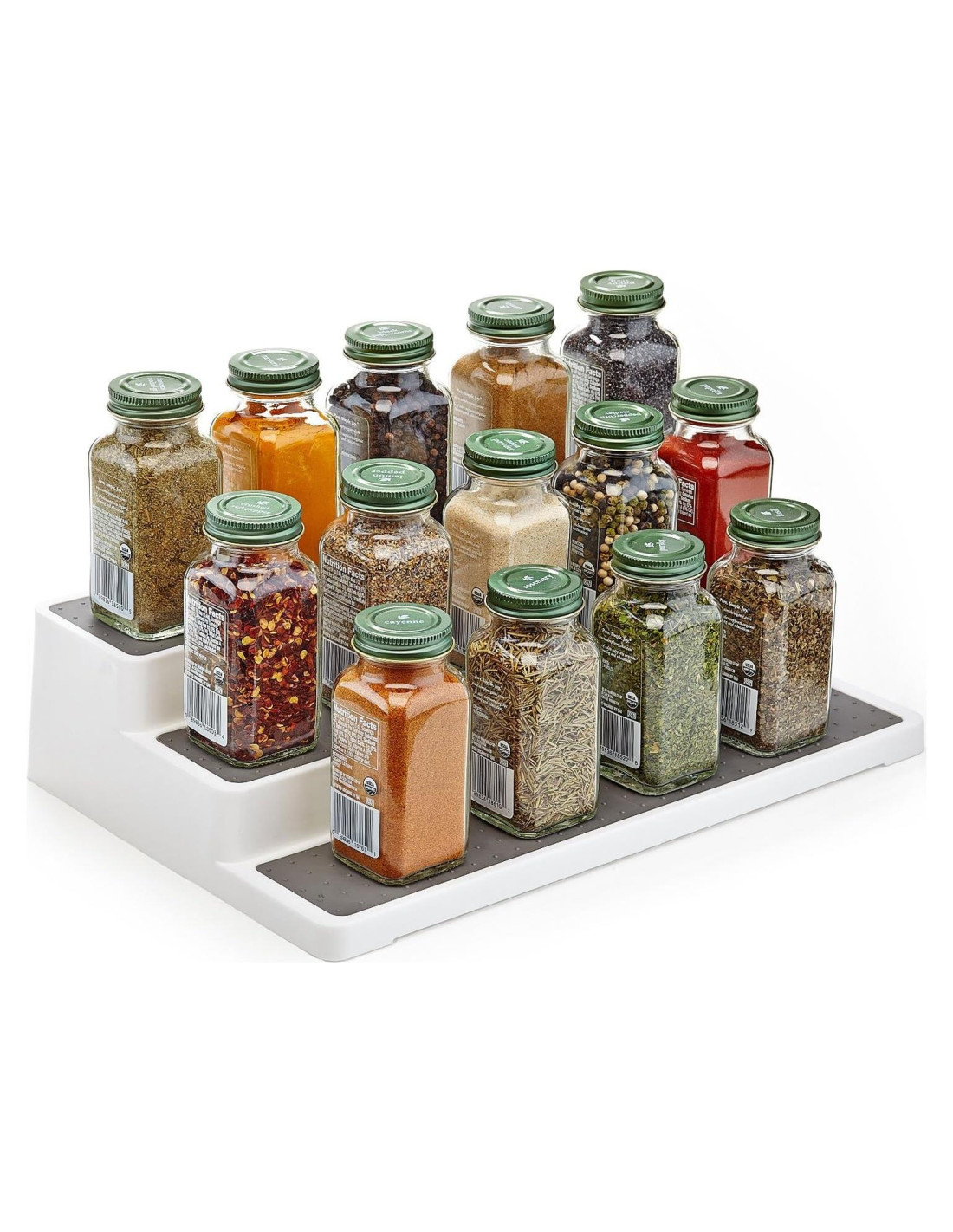 - Estante de 3 niveles para usos infinitos: Ideal para especias, botellas de pastillas, vitaminas, tarros, latas, té, botellas, café y suministros de oficina para maximizar el espacio de almacenamiento de cualquier cocina, despensa, dormitorio u oficina.