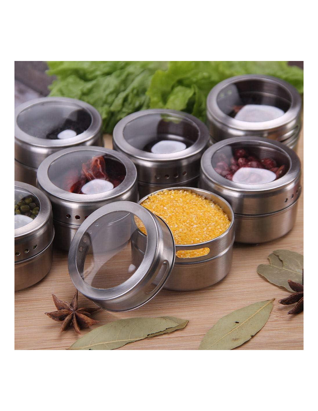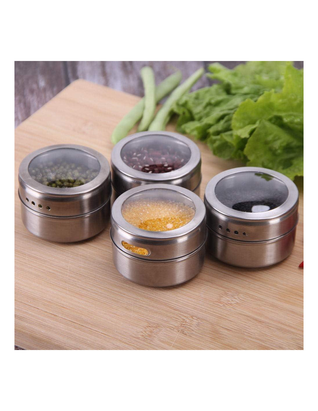 - Toda la gama de productos está hecha de acero inoxidable de grado alimenticio. Los tarros de especias magnéticos pueden ser una gran manera de resolver problemas de espacio para su cocina.