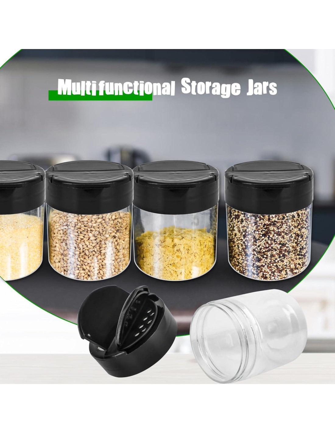 - Información del tamaño: Los frascos de especias de plástico con tapas negras son aproximadamente 5.5 x 6 cm (2.16 x 2.36 pulgadas), con una capacidad de aproximadamente 4 oz (120 ml), lo que los convierte en un tamaño óptimo para contener y almacenar una cantidad considerable de especias