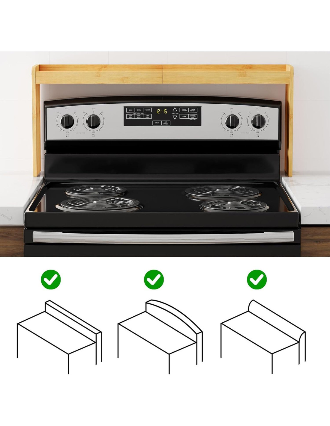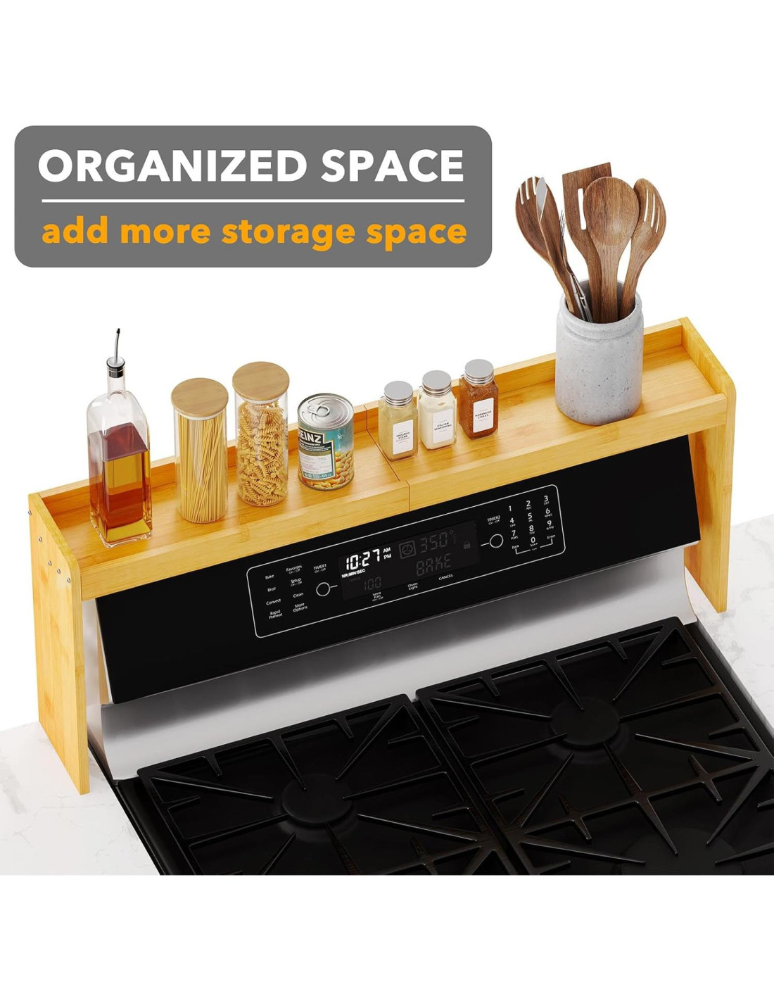 - ORGANIZADO Y BELLO - Mantén tu estufa de cocina ordenada con el organizador superior de bambú; El estante está diseñado para dar espacio extra sobre el horno; TAMAÑO del estante: 32.5" (82.5 cm) de ancho x 5.5" (14 cm) de profundidad x 13.8" (35.1 cm) de alto