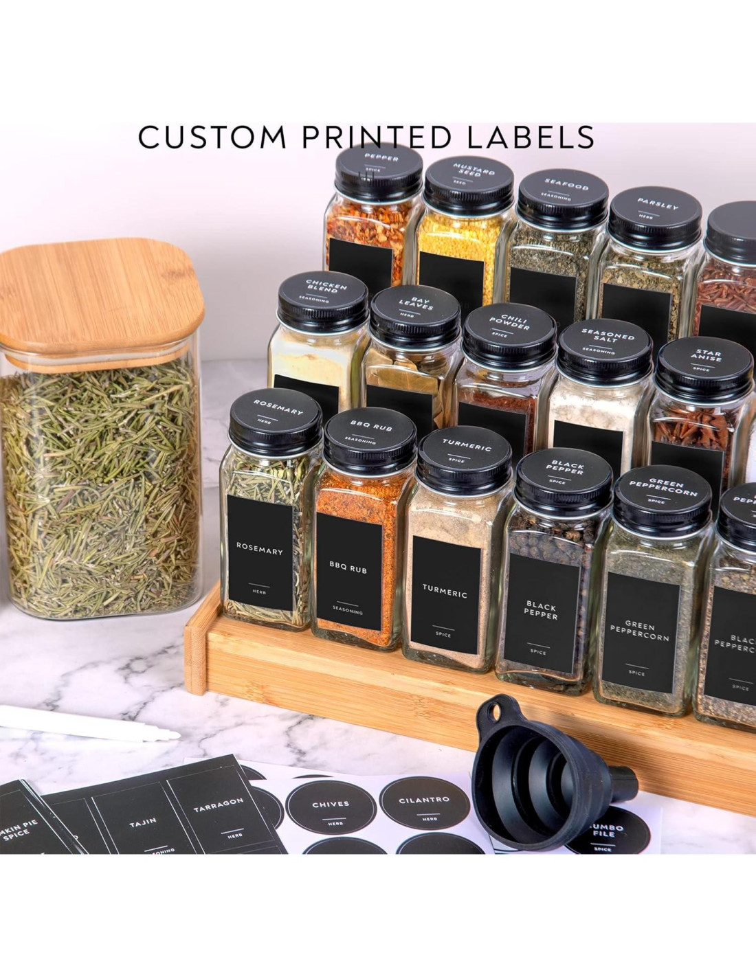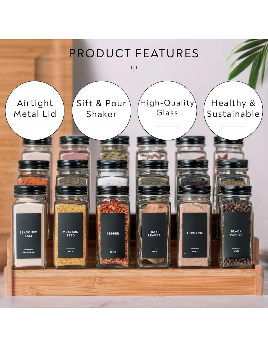 - OPCIÓN SALUDABLE: El set de frascos de vidrio LARAMAID está hecho de vidrio de alta calidad con tapas de aluminio negro herméticas. Las tapas de Laramaid pueden aislar efectivamente la humedad y mantener los ingredientes secos y frescos. ¡No necesitas preocuparte por que las especias, hierbas e ingredientes se echen a perder!