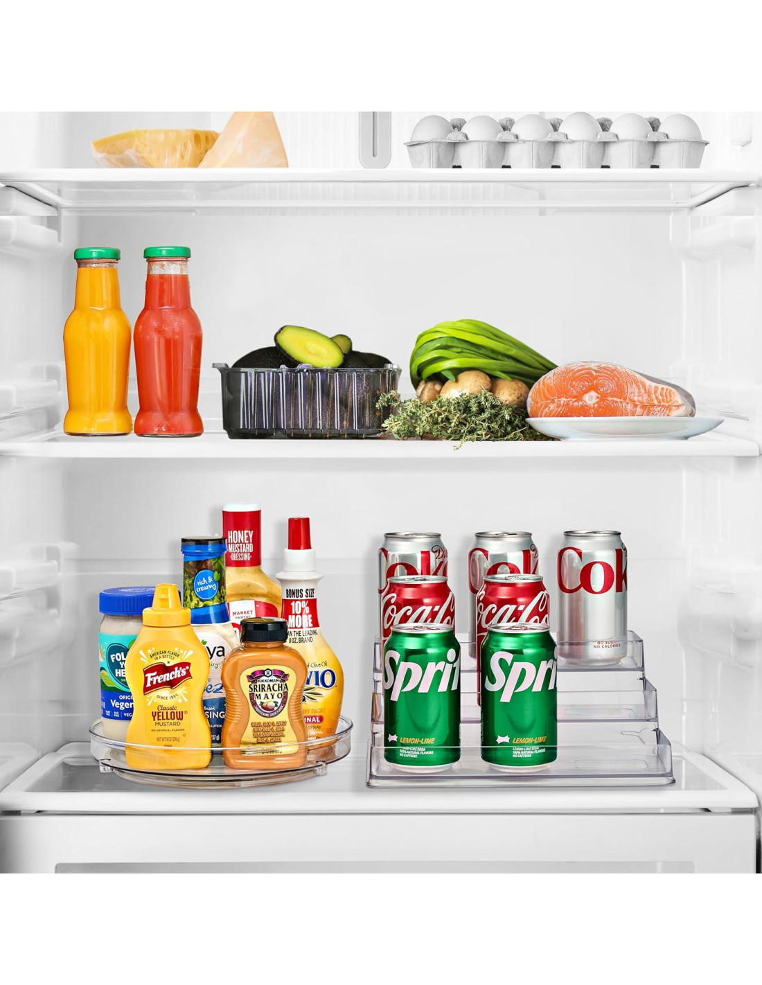 - Lazy Susan de acrílico de 9 pulgadas: Compacto pero espacioso, este giratorio se adapta a gabinetes o refrigeradores, ofreciendo fácil acceso a artículos de difícil alcance con un simple giro.
