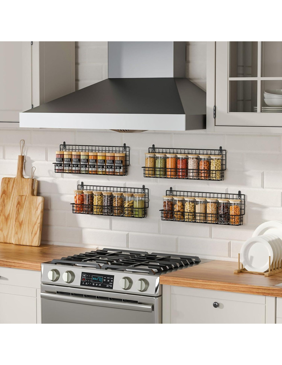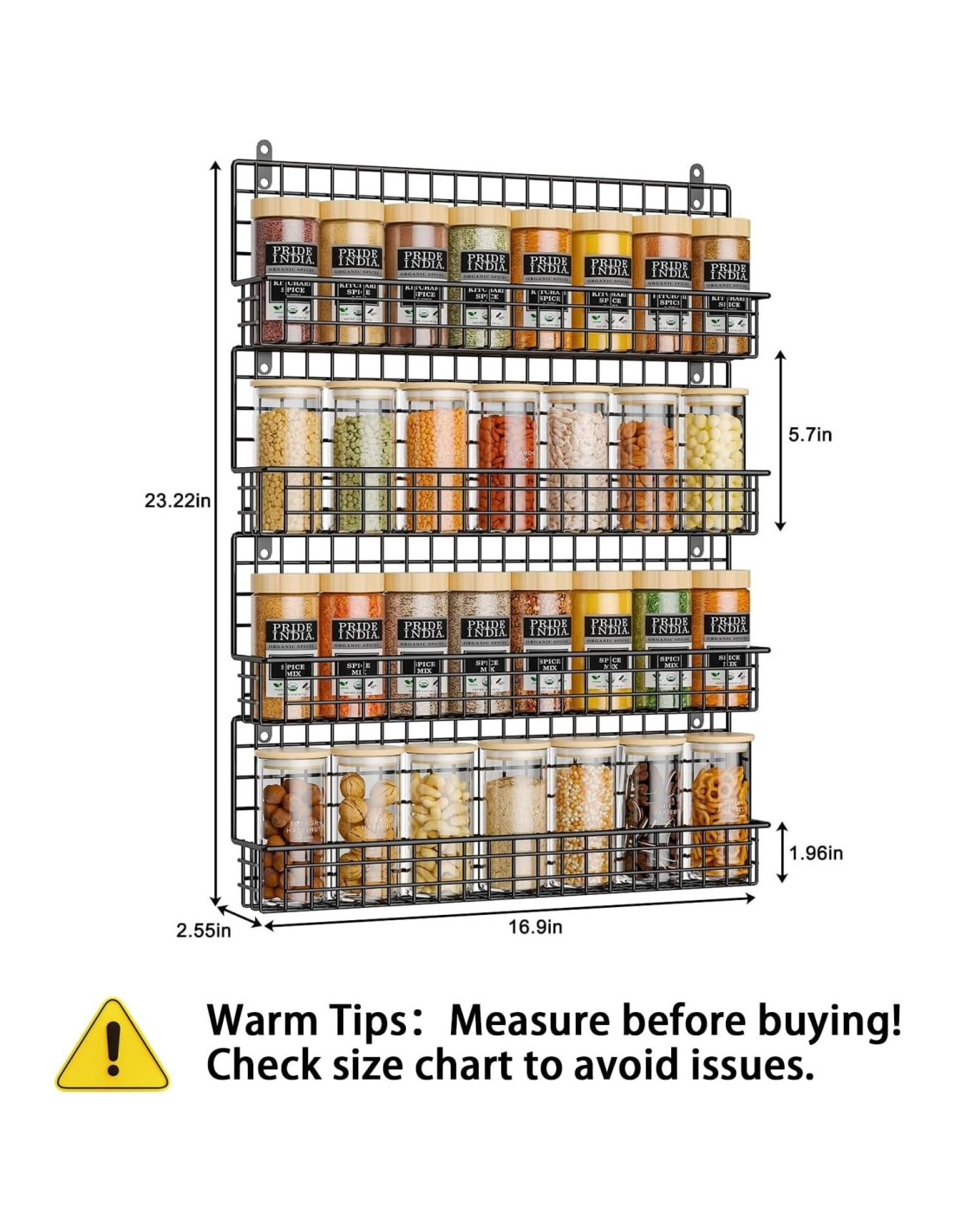 - [Construcción Fuerte y Duradera] El estante de especias de 4 niveles está hecho de alambre de hierro grueso, para mayor estabilidad y durabilidad, y se incluye hardware de montaje. Tamaño de una capa: 16.9"L x 2.55"W x 5.7"H (42,93 cm x 6,45 cm x 14,48 cm); tamaño de 4 capas: 16.9"L x 2.55"W x 23.22"H (42,93 cm x 6,45 cm x 59,00 cm)