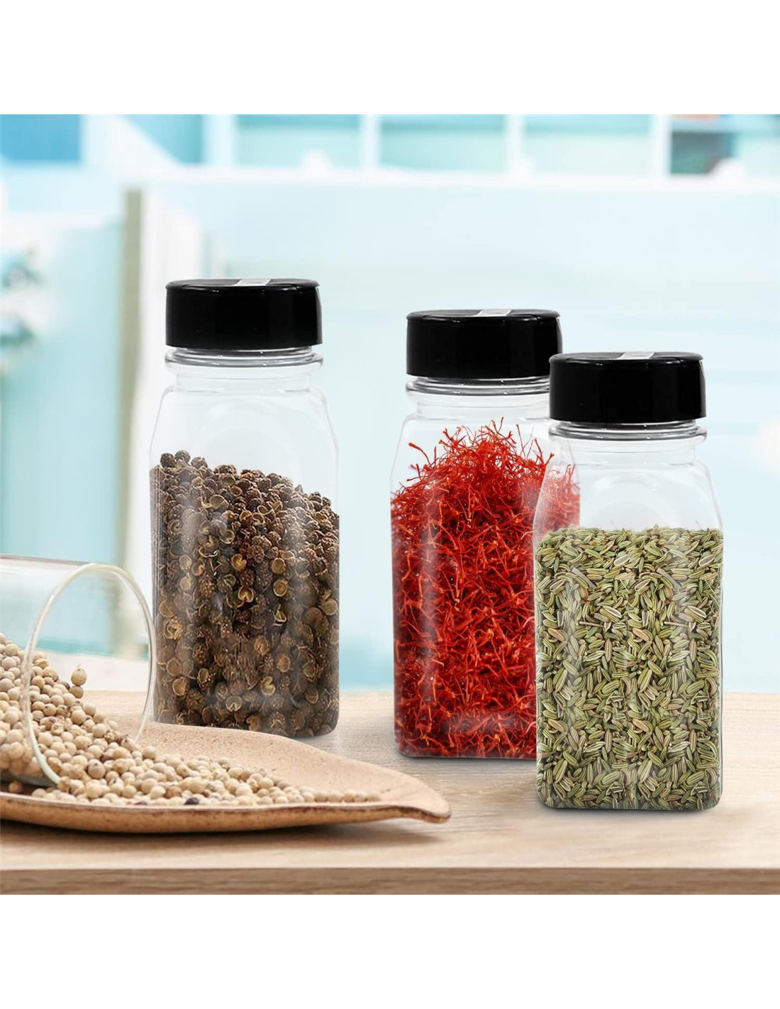 - Multiusos: Nuestros tarros de plástico claros son perfectos para almacenar especias secas, sal, pimienta, condimentos, mezclas de hierbas, polvo, purpurina, sales de baño, manualidades, etc.