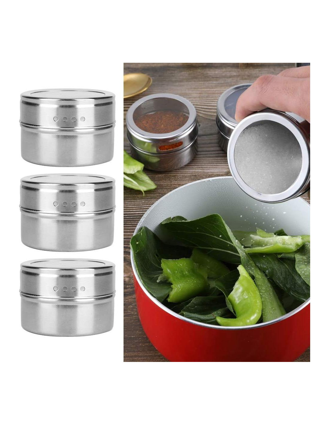 - AMPLIAMENTE APLICABLE: Los tarros de especias de acero inoxidable, los contenedores de especias para viajar tienen un estilo simple y moderno, los contenedores de especias para viajar son adecuados para cocinas en casa, restaurantes, barbacoas. Genial para mezclar y cocinar. Las superficies de acero inoxidable son muy fáciles de limpiar.