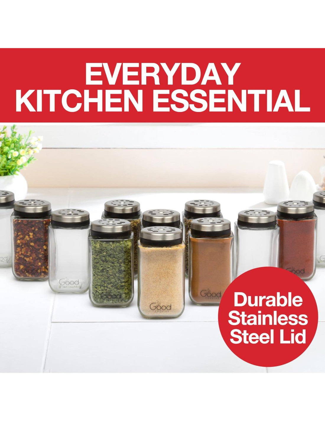 - JUEGO DE TARROS DE ESPECIAS AJUSTABLES PREMIUM DE 6: Nuestro juego de 6 tarros de especias de vidrio de alta calidad Good Cooking tiene una capacidad de 180 ml cada uno, midiendo 10.16 cm x 5.84 cm x 5.84 cm cada uno. Es fácil verificar la cantidad de especias disponibles. El diseño contemporáneo facilita la medición, la tapa de acero inoxidable con 6 opciones de vertido asegura que estos saleros satisfagan todas tus necesidades en la cocina.