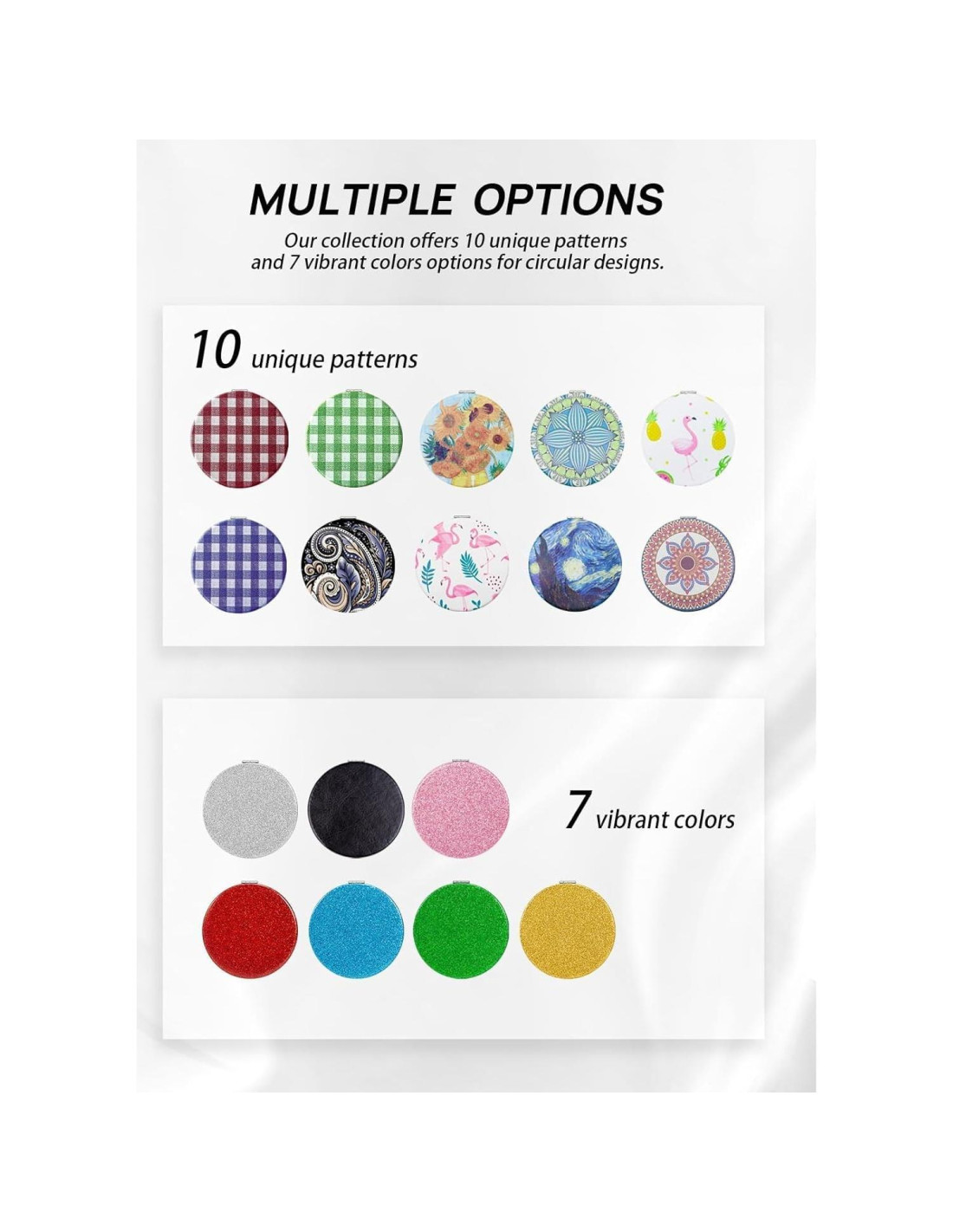 - AMPLIA GAMA DE OPCIONES: Expresa tu personalidad única con una elección de diez patrones diferentes y siete colores vibrantes. Encuentra el espejo que coincida con tu estilo.