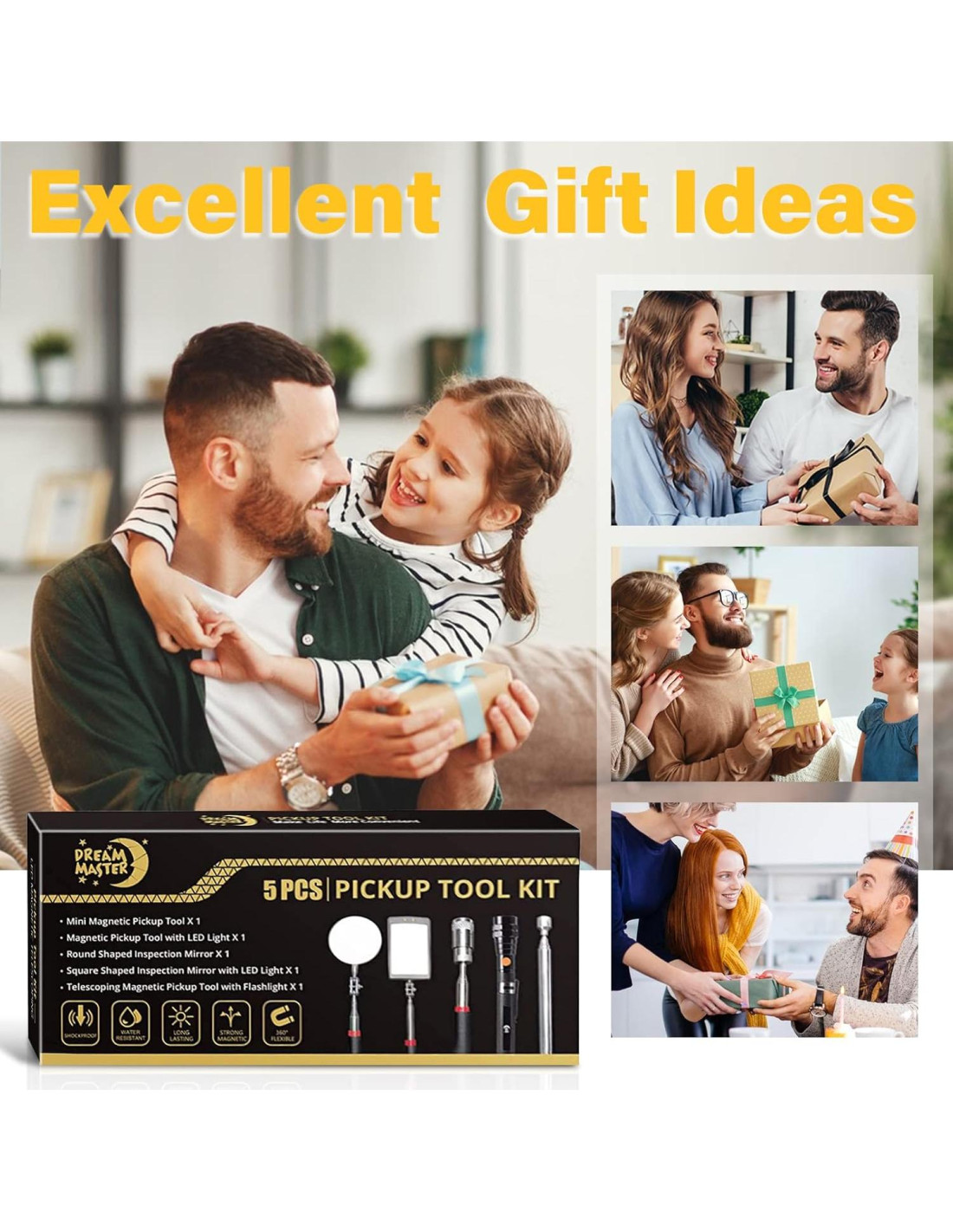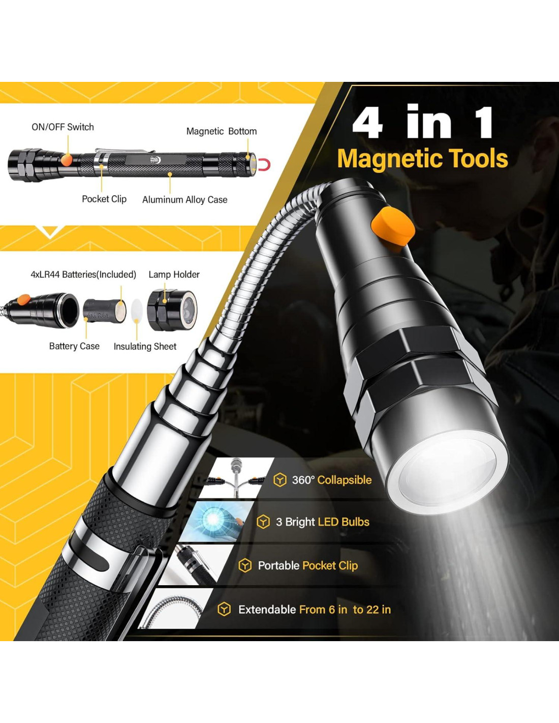- Cabezal Magnético Fuerte y Mango Telescópico: 2 varillas de recogida y la linterna magnética están equipadas con cabezal magnético. Pueden agarrar fácilmente tuercas, tornillos y otras piezas metálicas. Los 5 gadgets geniales pueden extenderse y acortarse. Son una gran herramienta para recoger